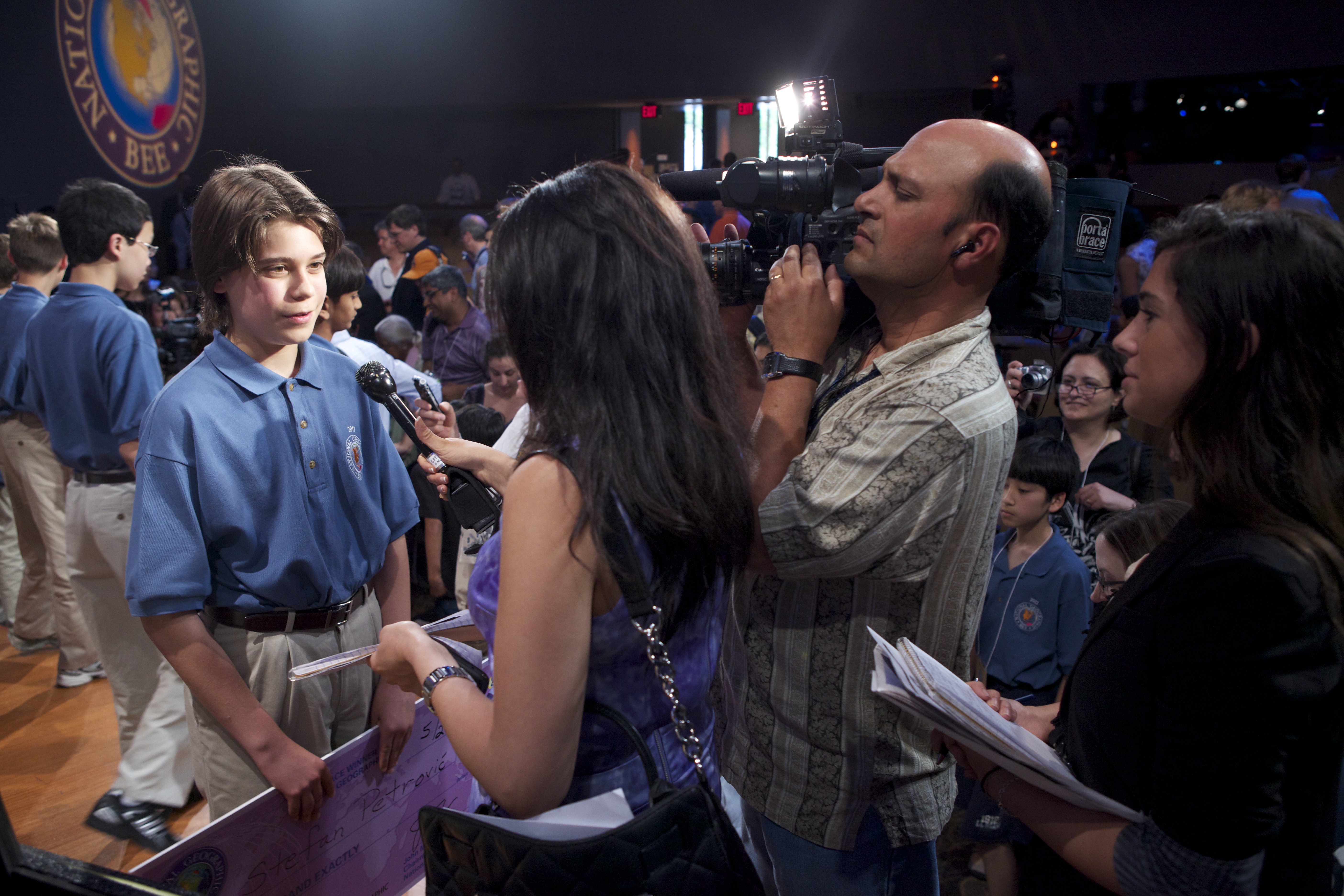 Poise under pressure: Stefan Petrovic, who will be an eighth-grader at South Middle School, wants to become U.S. secretary of state someday. He had an opportunity to face some national media after finishing third in the National Geographic Bee, conducted Wednesday, May 25, 2011 in Washington, D.C.