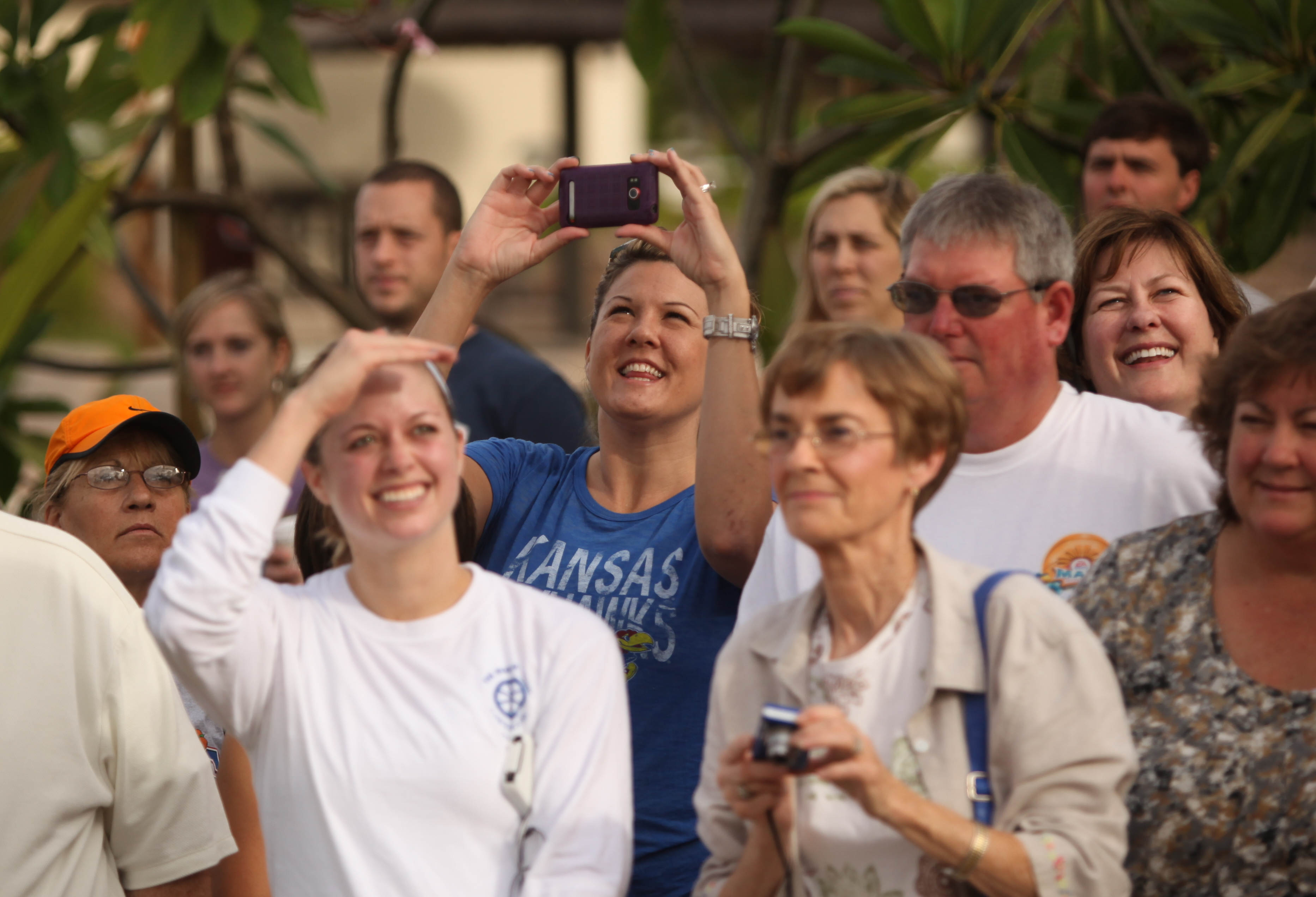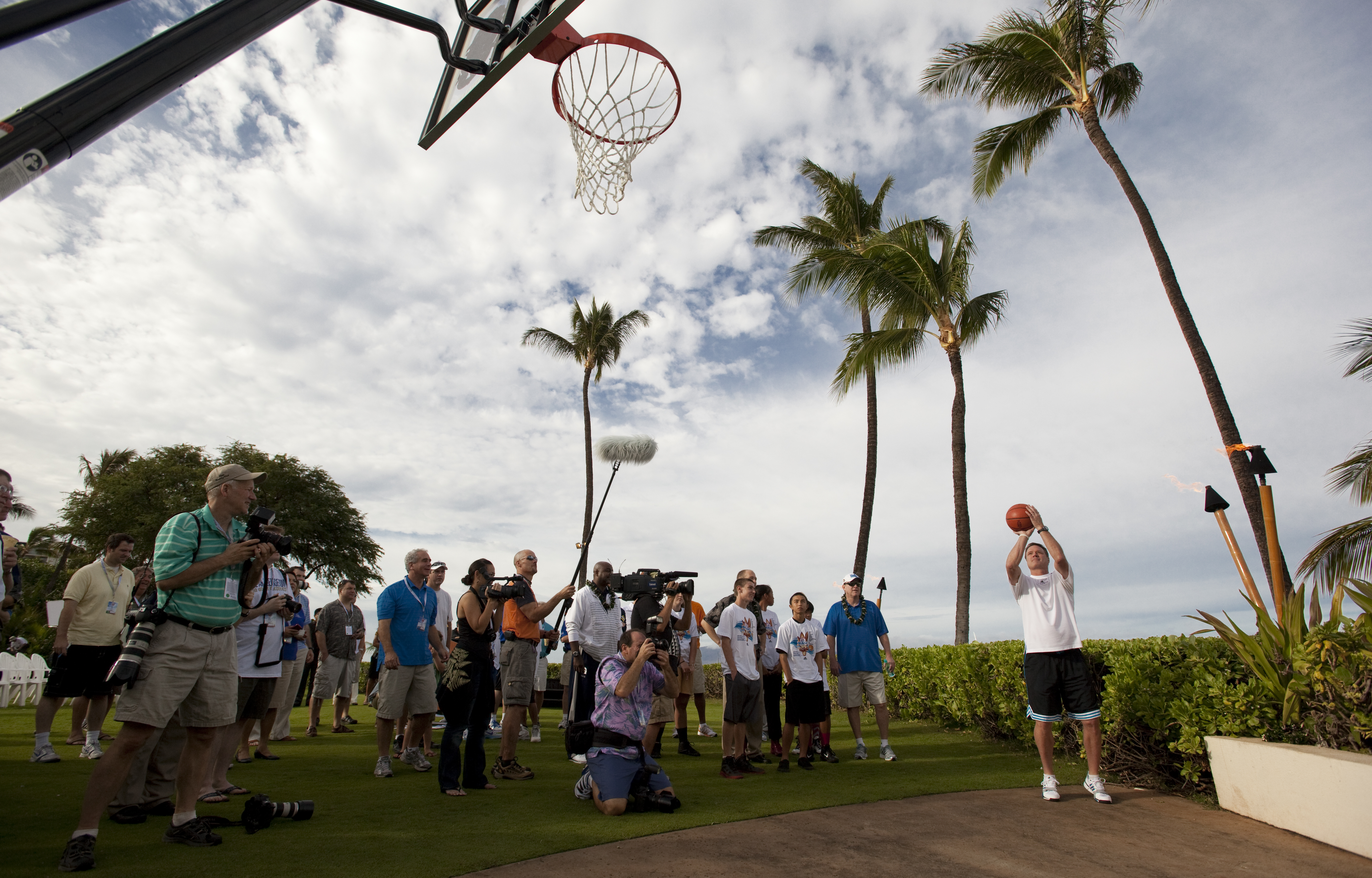 Basketball fans, including a few from Kansas line up to watch the coaches during a press conference on Sunday, Nov. 20, 2011 at the Sheraon Maui on Kaanapali Beach in Lahaina.