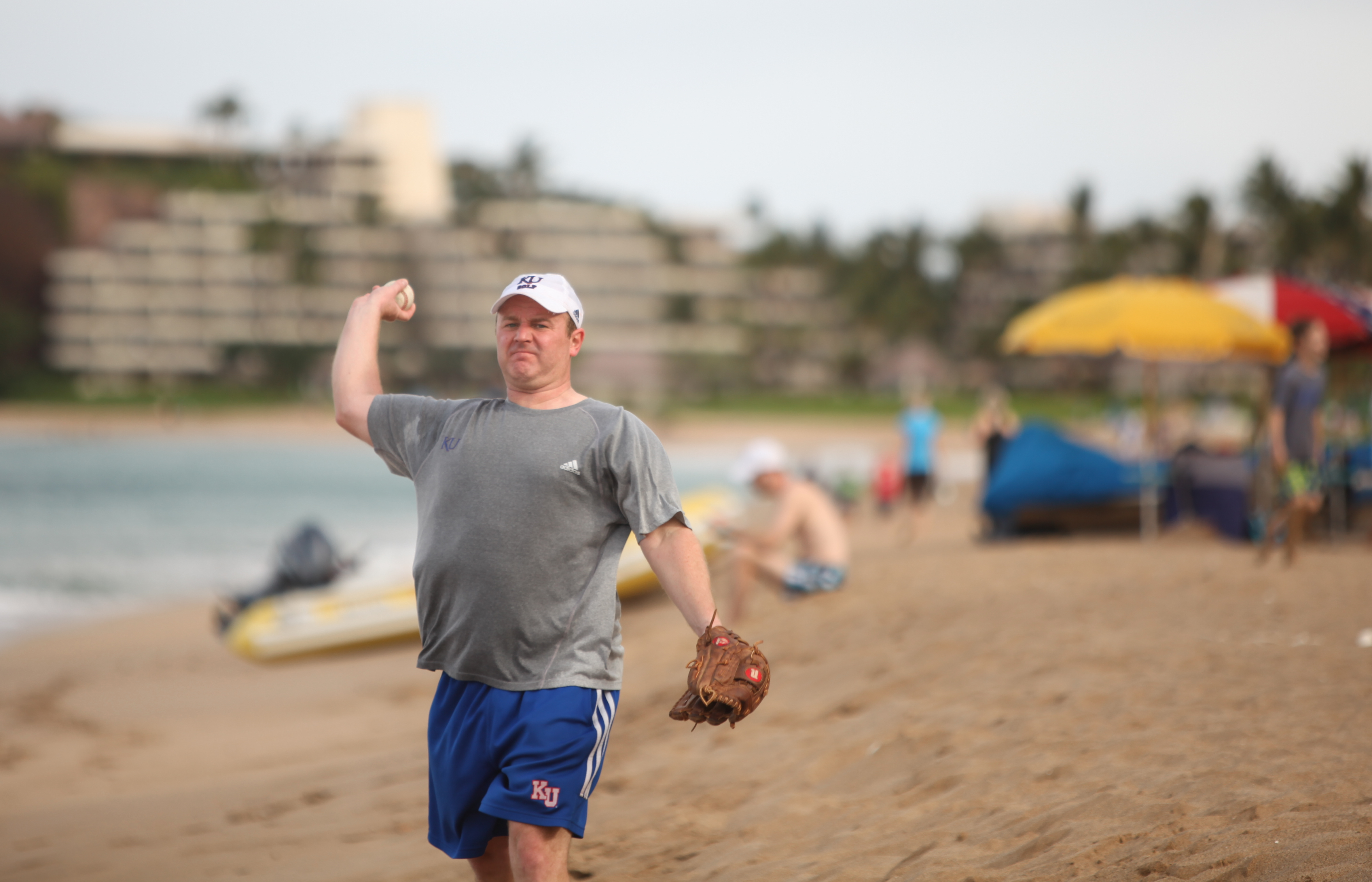 Bill Cowgill, trainer for the Kansas basketball team throws the baseball around on the beach with Lee McMahon, not pictured, on Sunday, Nov. 20, 2011 on Kaanapali Beach in Lahaina.