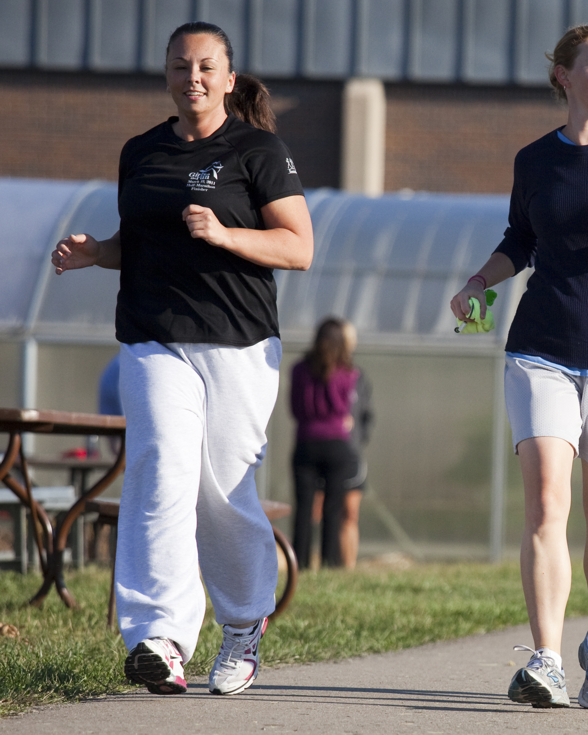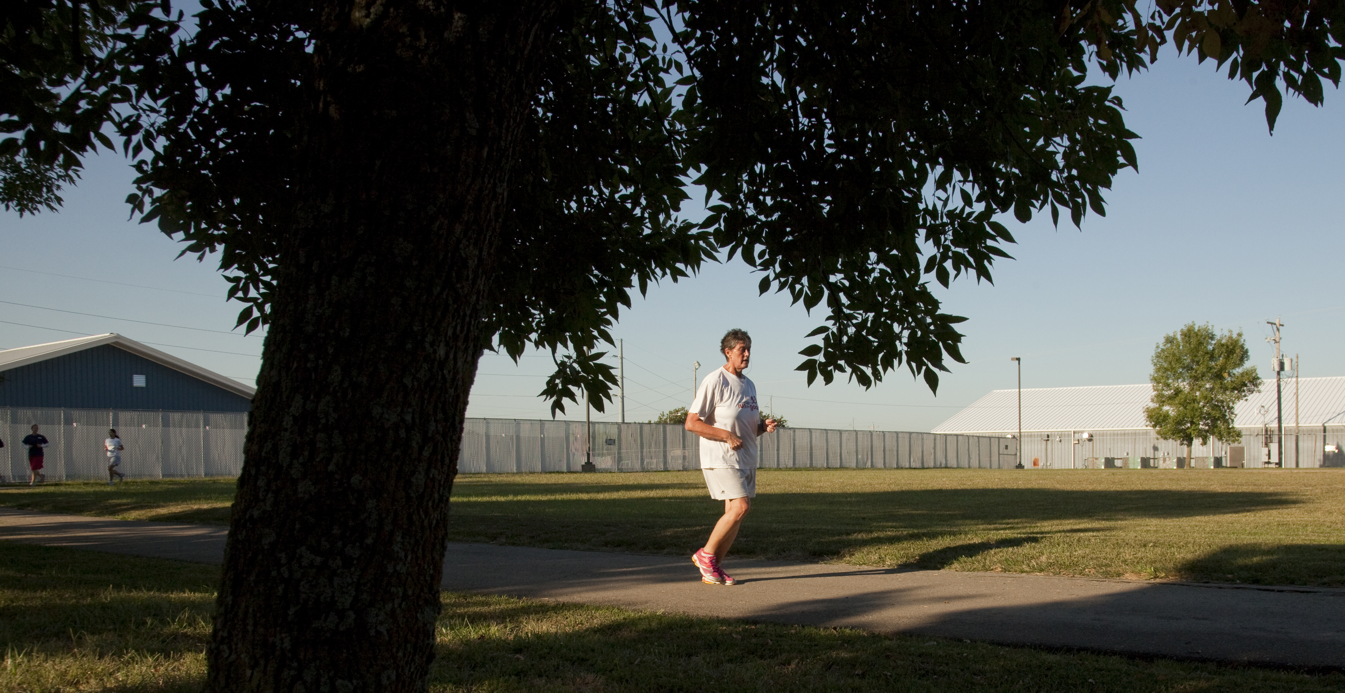 Laura Kreisler, who is serving for time for embezzlement, takes a morning run Friday, Sept. 23, 2011, at the Topeka Correctional Facility. Kreisler, who was diagnosed with Parkinson's disease in 2001, says running has been a benefit physically and emotionally.