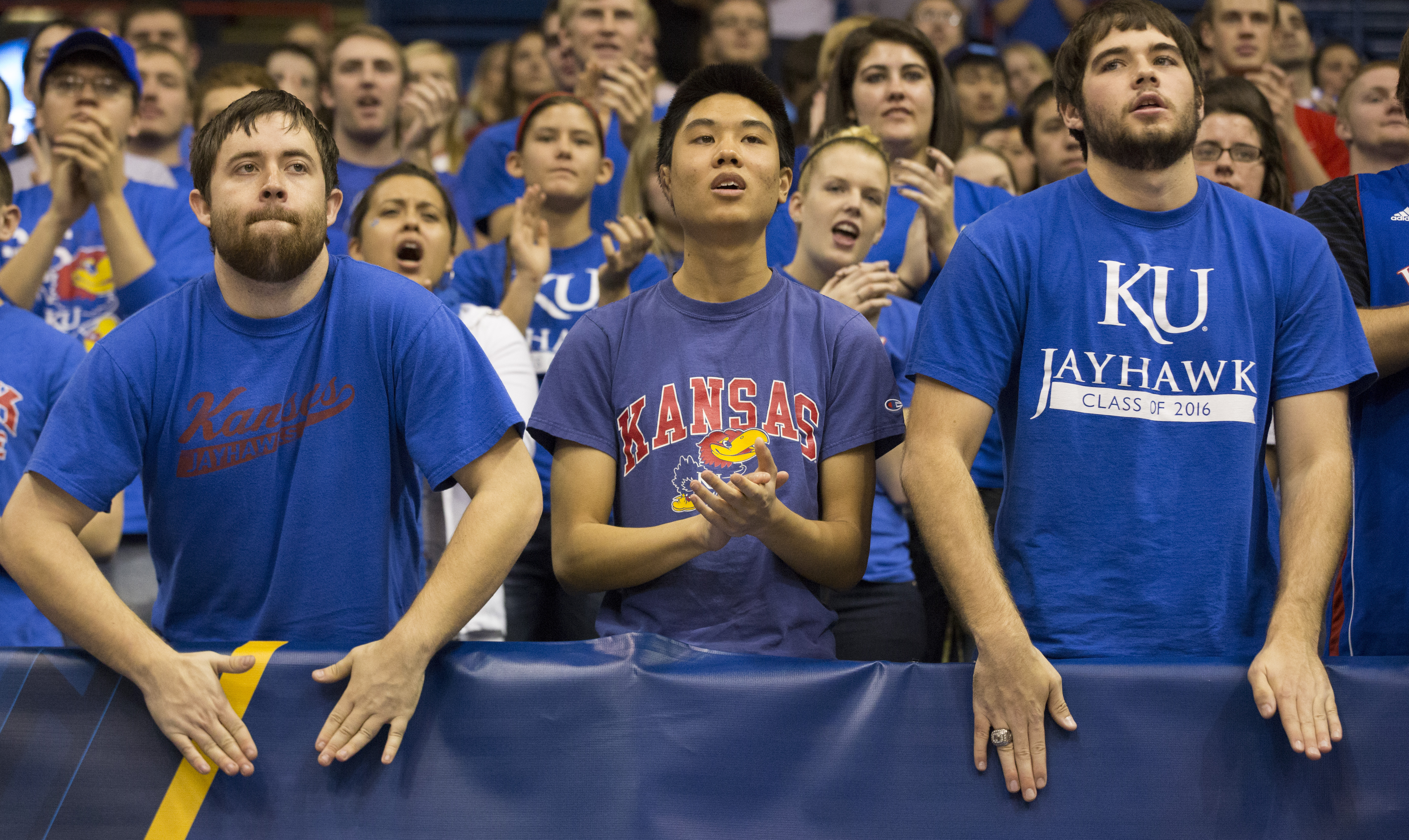 Kansas fans try to encourage the team during Kansas' second round NCAA tournament game against Wichita State, Saturday, Dec. 1, 2012 in Allen Fieldhouse. The Jayhawks fell, 3-1, and with the loss their season ended.