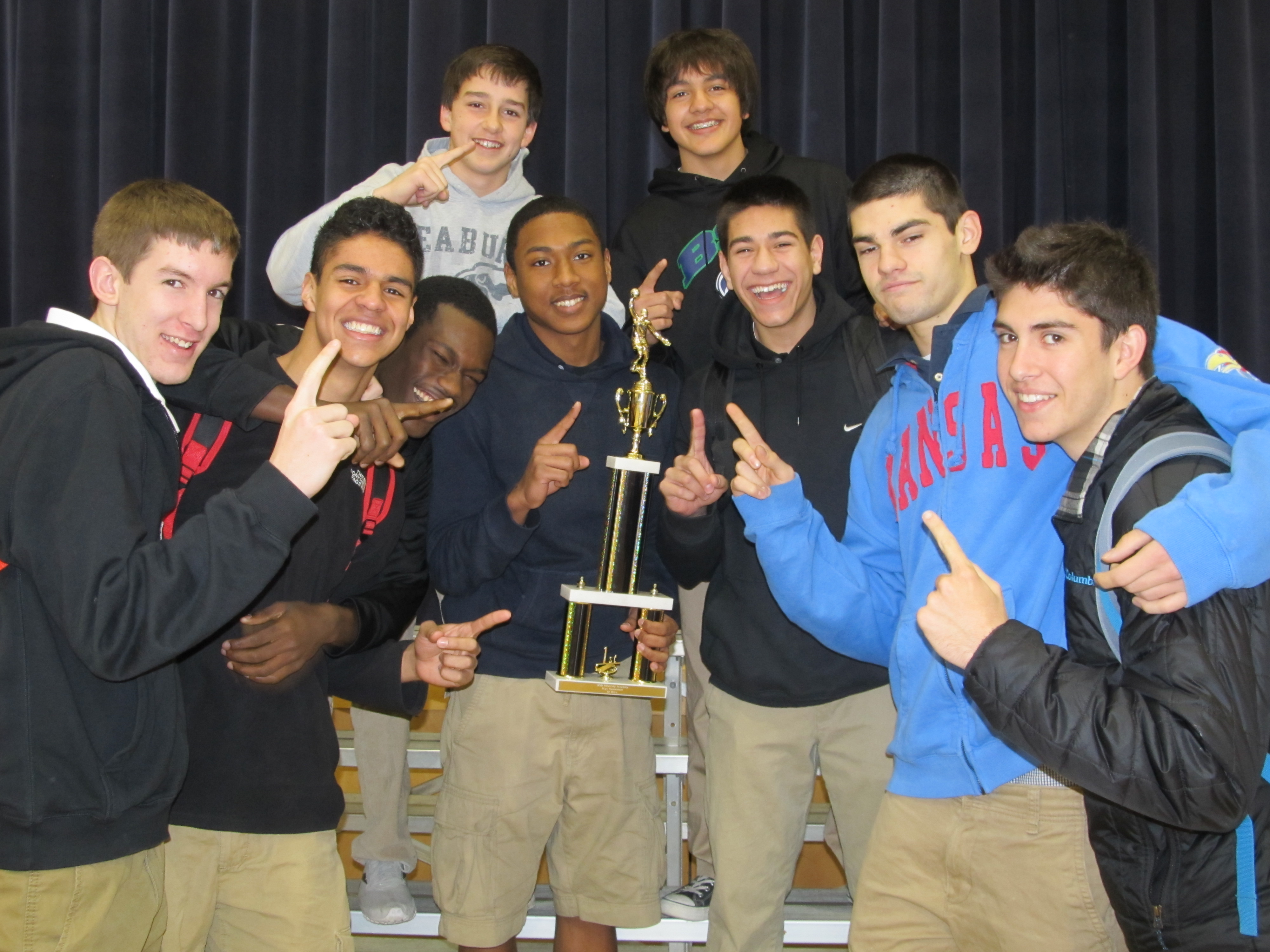 The Bishop Seabury Academy boys varsity basketball team earned the University Academy Tournament title Jan. 28 in Kansas City, Mo. Team members pictured, from left, are back row, Joe Simpson and Marcel Cortez; and front row, Jesse May, Thomas Diaz, Khadre Lane, Marcus Allen, Garrett Gillett, Georgi Funtarov and Fisher Almanza. Margie Lawrence submitted the photo.