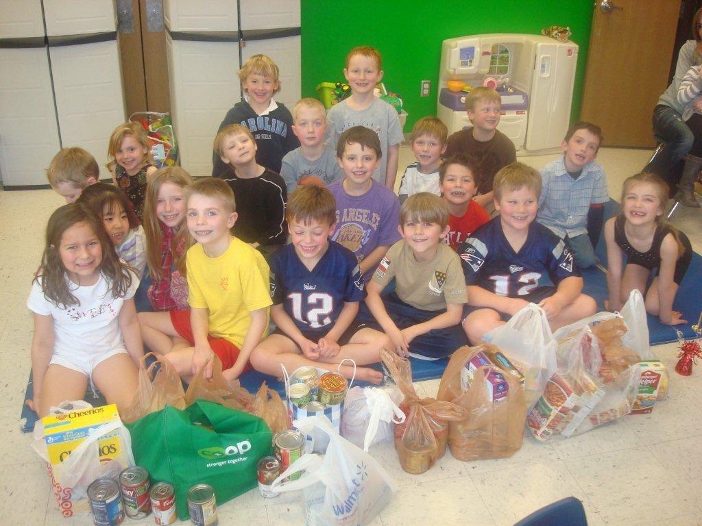 Matt Phillips of Lawrence, front row, second from right, celebrated his seventh birthday with his first-grade friends at Lawrence Gymnastics Academy on Jan. 29. Matt thanks his friends for bringing donations in honor of his special day. The food will be donated to the Ballard Center. Laura Phillips submitted the photo.
