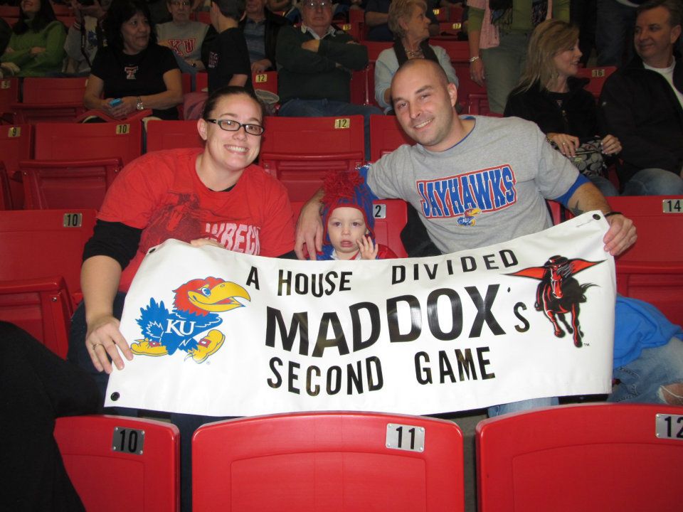 This year marked the second time Sid, Nikki and Maddox Pastor attended the Texas Tech University vs. Kansas University men’s basketball game, which was Jan. 11 in Lubbock, Texas. Sid, a KU fan who is in the Air Force, his wife, Nikki, a Texas Tech fan, and son Maddox, 2, live in Abilene, Texas. Sid’s mother, Tammy Ziesenis of Lawrence, who says Maddox will choose to be a KU fan when he grows up, submitted the photo.