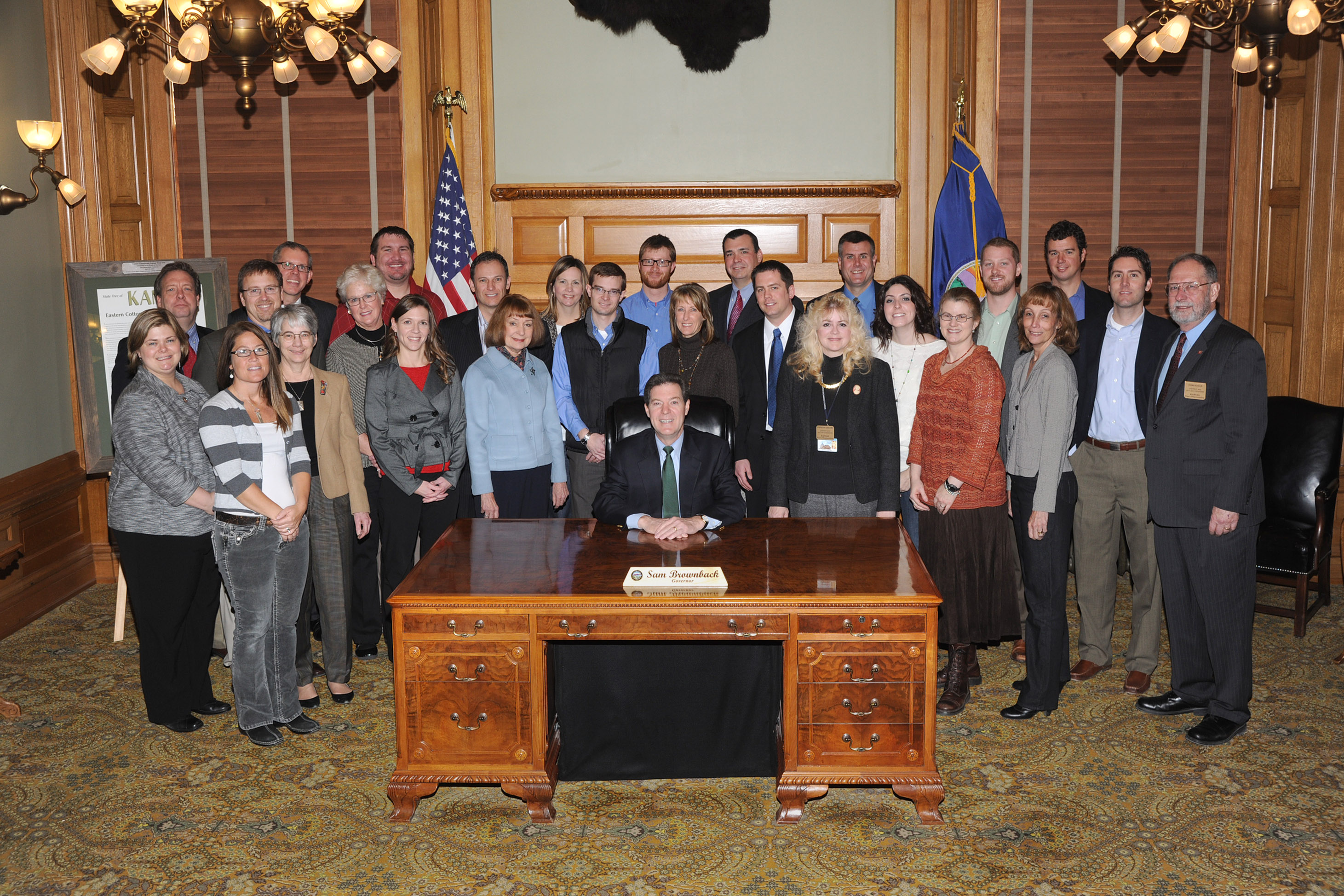 Members of the 2012 Leadership Lawrence class, a program of the Lawrence Chamber of Commerce, visited the Kansas Capitol on Feb. 2 to meet with members of the local legislative delegation. Group members are pictured with Kansas Gov. Sam Brownback. State Rep. Tom Sloan, R-Lawrence, submitted the photo.