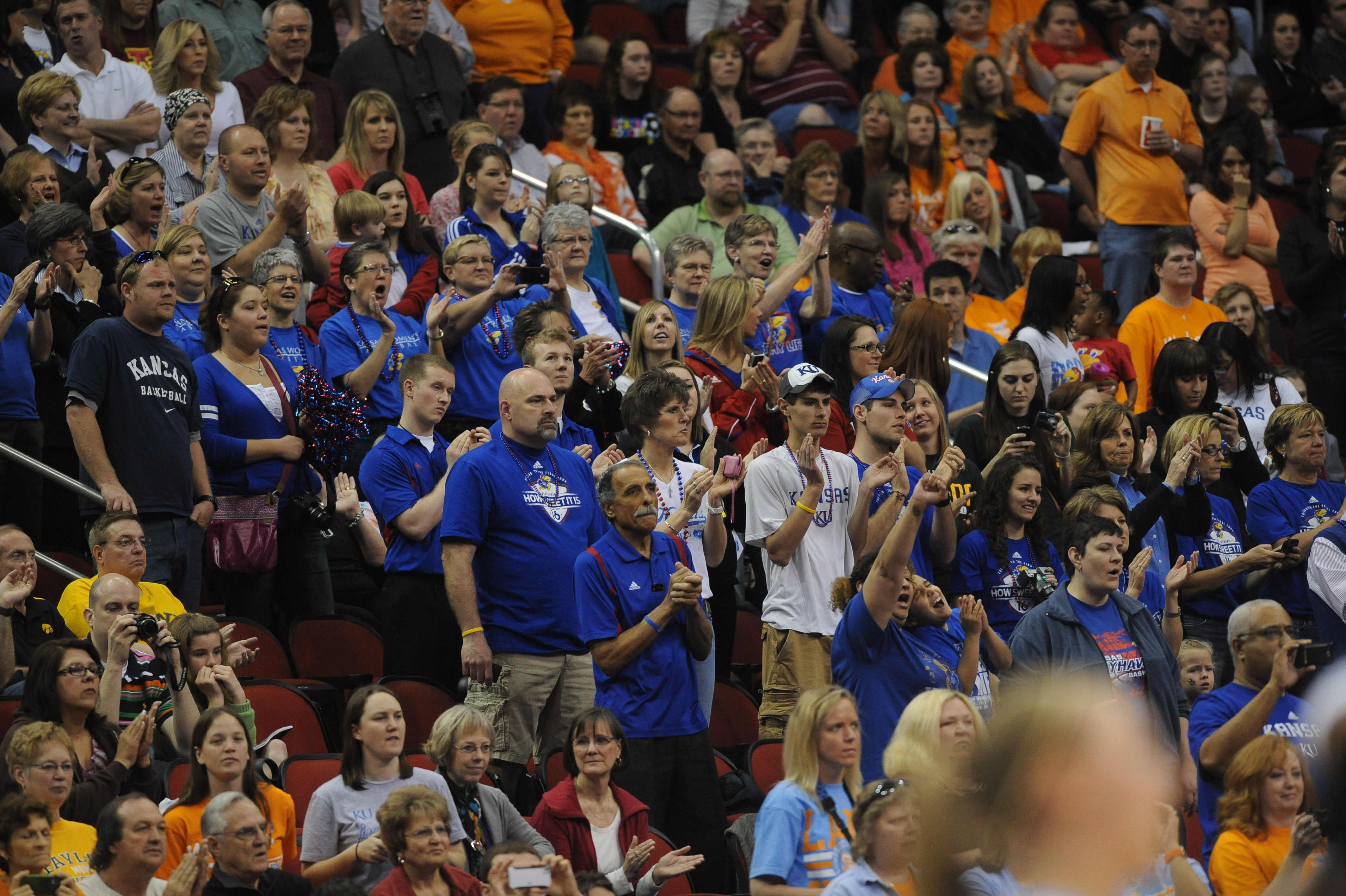 Kansas fans fill a small section in Wells Fargo Arena as the KU women and the Tennessee Lady Volunteers match up on Saturday March 24, 2012.