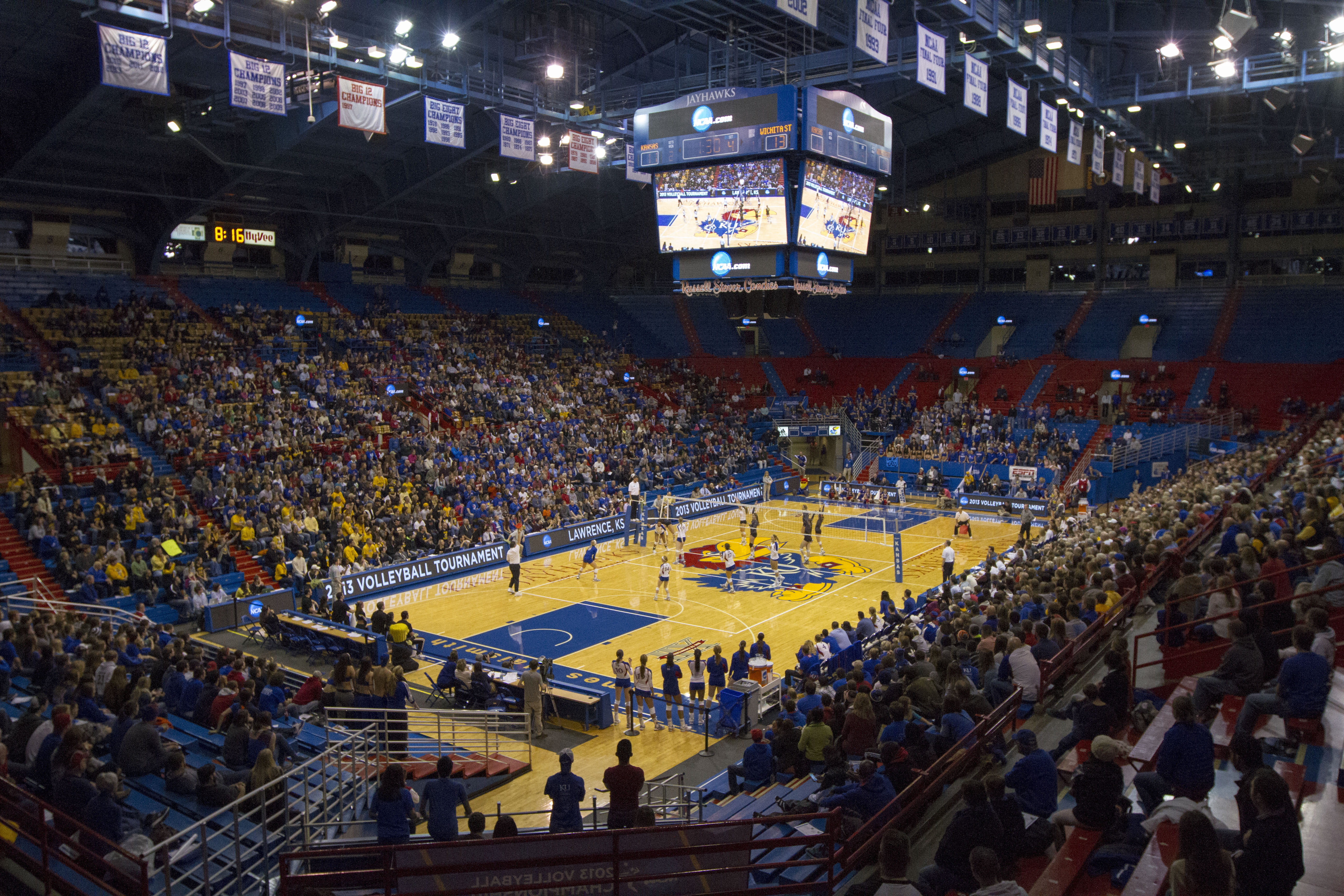 Thousands of fans braved the cold to watch Kansas take on Wichita State in volleyball in the first round of the NCAA tournament at Allen Fieldhouse. The Jayhawks defeated the Shockers, 3-1, and will face Creighton Saturday at 6:30 p.m.