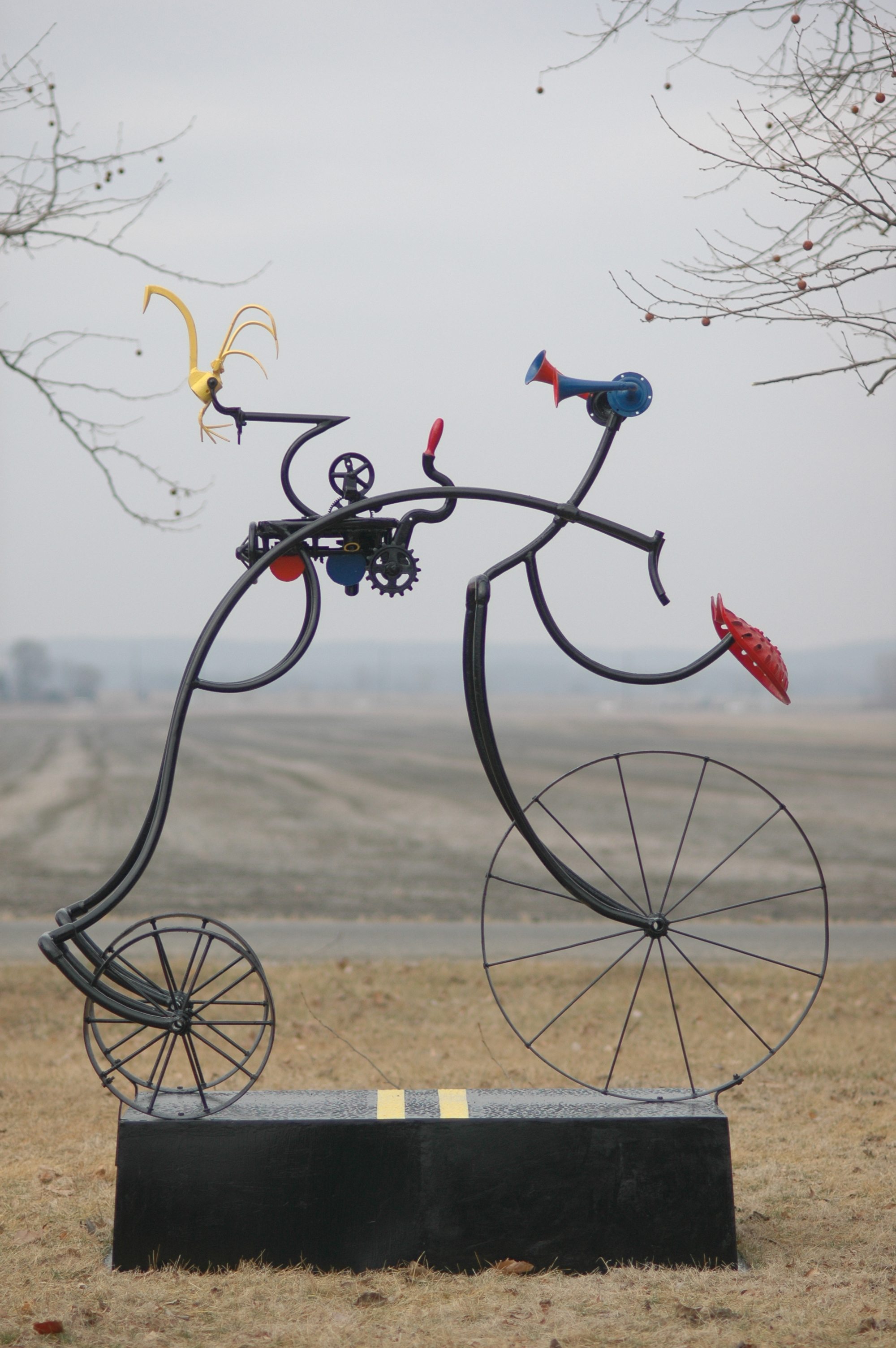 'Chicken Crossing the Road".Jim Brothers sculpture outside his North Lawrence studio.