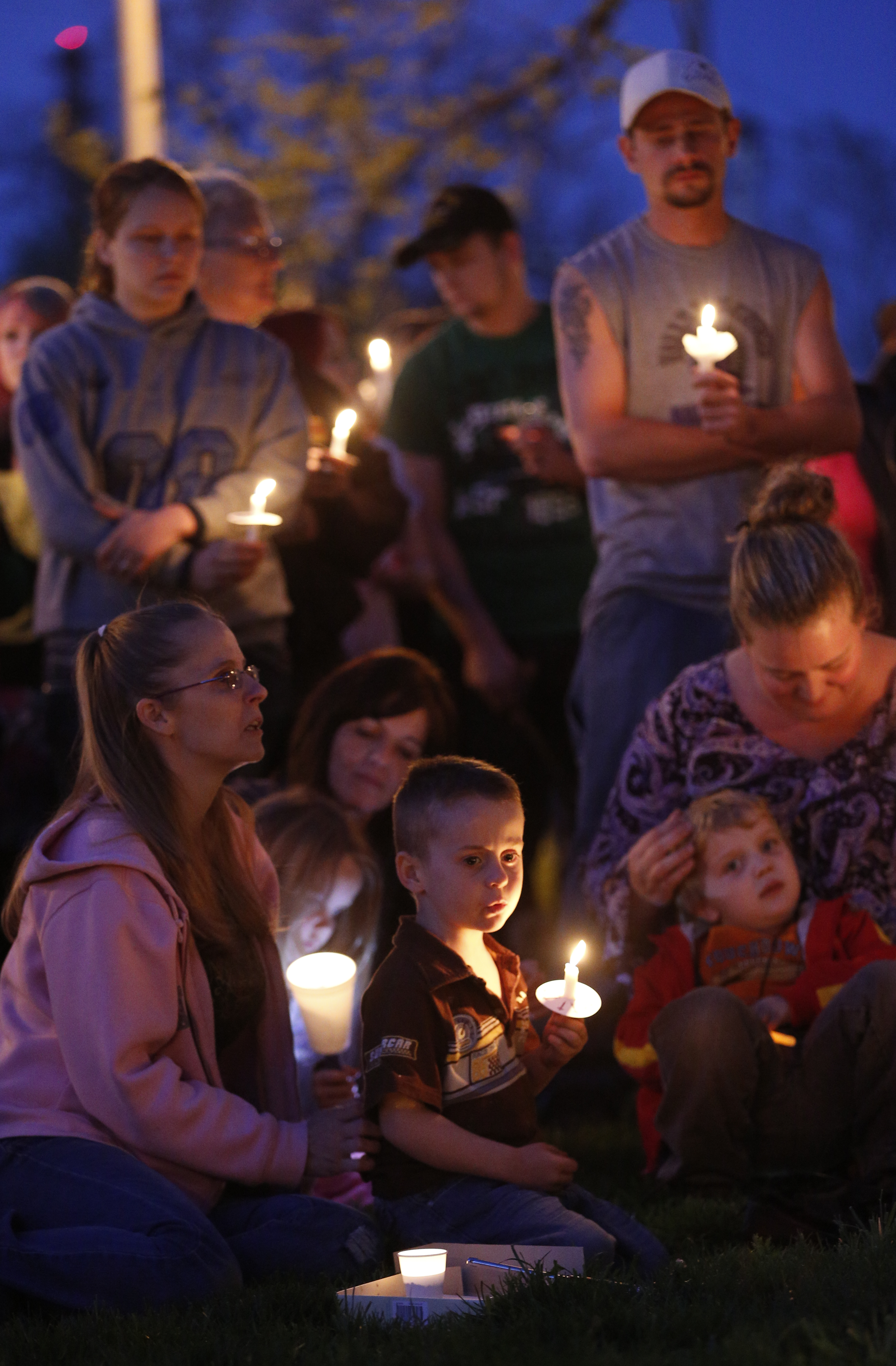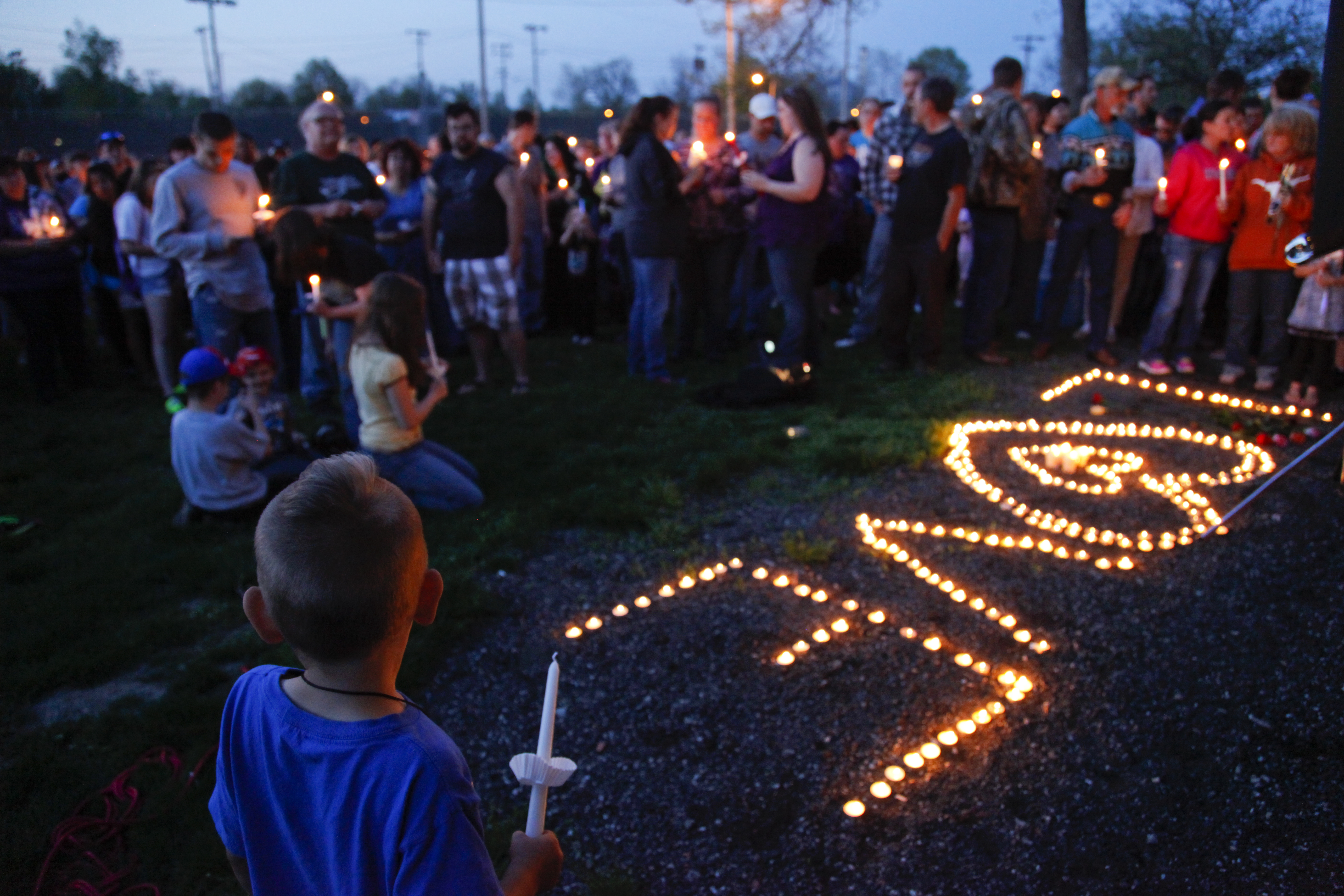A child waits to have his candle lit during a vigil to remember the homicide victims found in rural Ottawa, Friday, May 10, 2013 at Forest Park in Ottawa. Nick Krug/Journal-World Photo