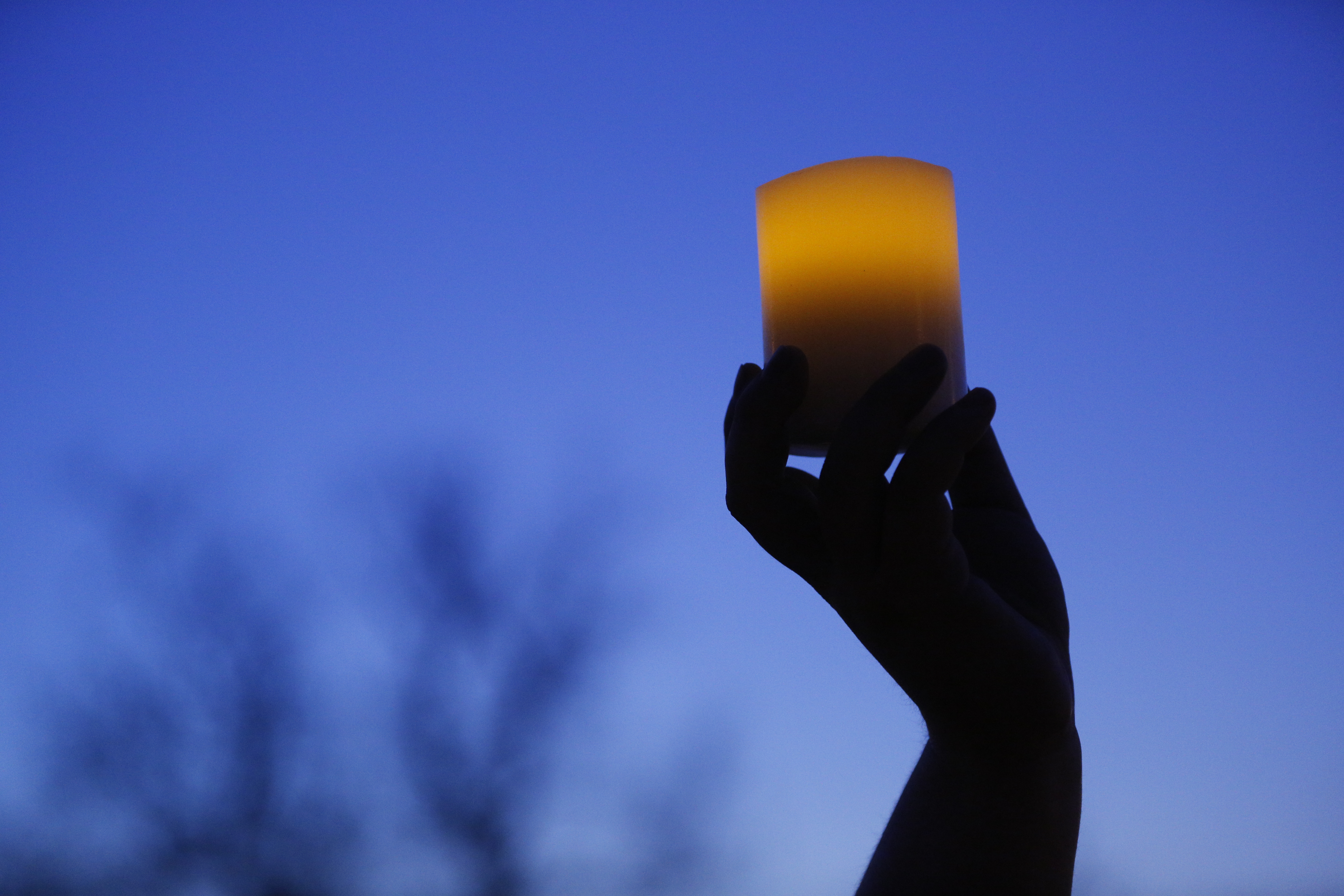 A vigil attendee holds up a candle as a song is played for Andrew Stout, one of the homicide victims found this week in rural Ottawa, Friday, May 10, 2013 at Forest Park in Ottawa. Nick Krug/Journal-World Photo