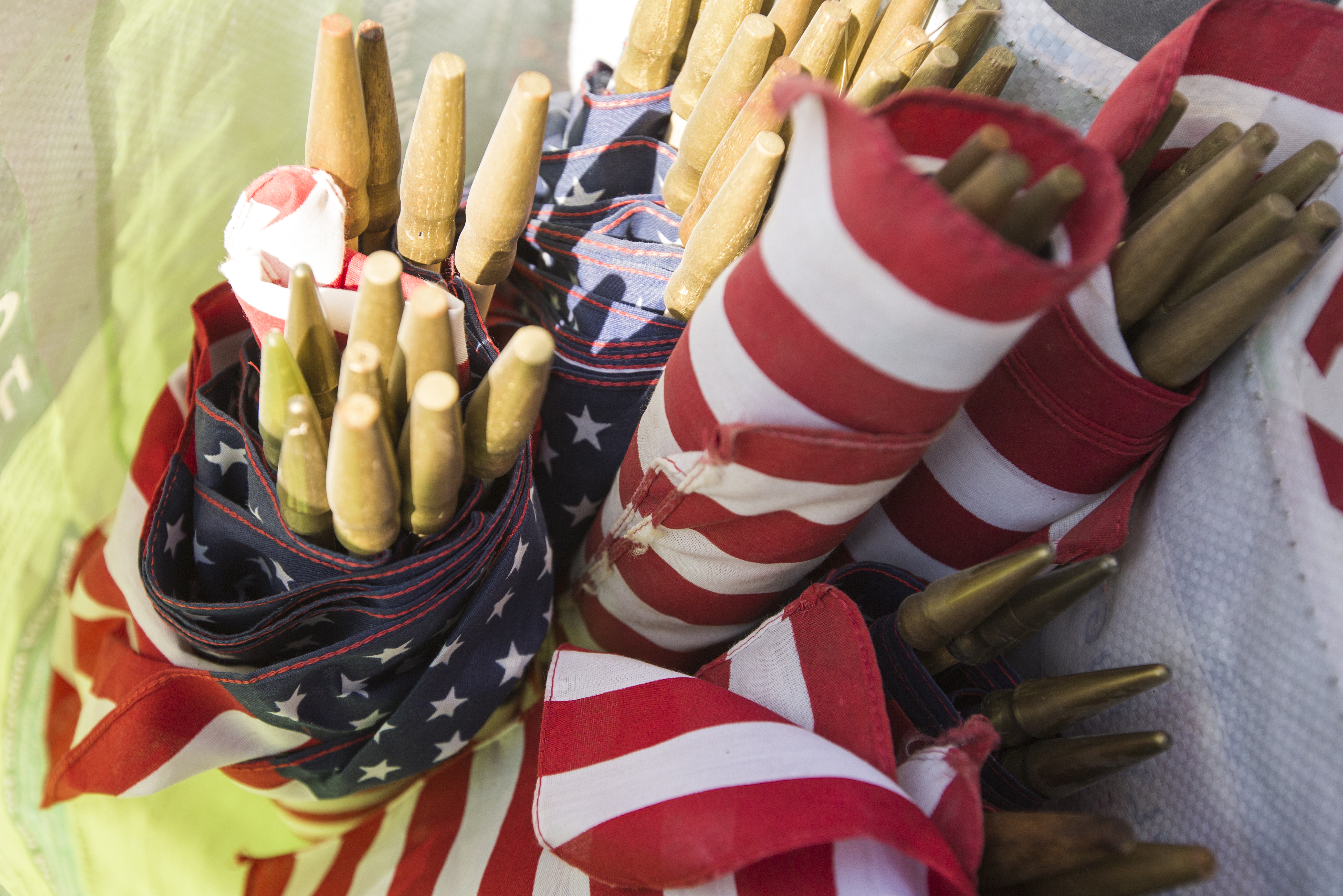 Bundles of American flags wait to be placed next to the gravestones of Civil War veterans by volunteers Saturday morning at Oak Hill Cemetery. The event was sponsored by the Sons of Union Veterans of the Civil War.