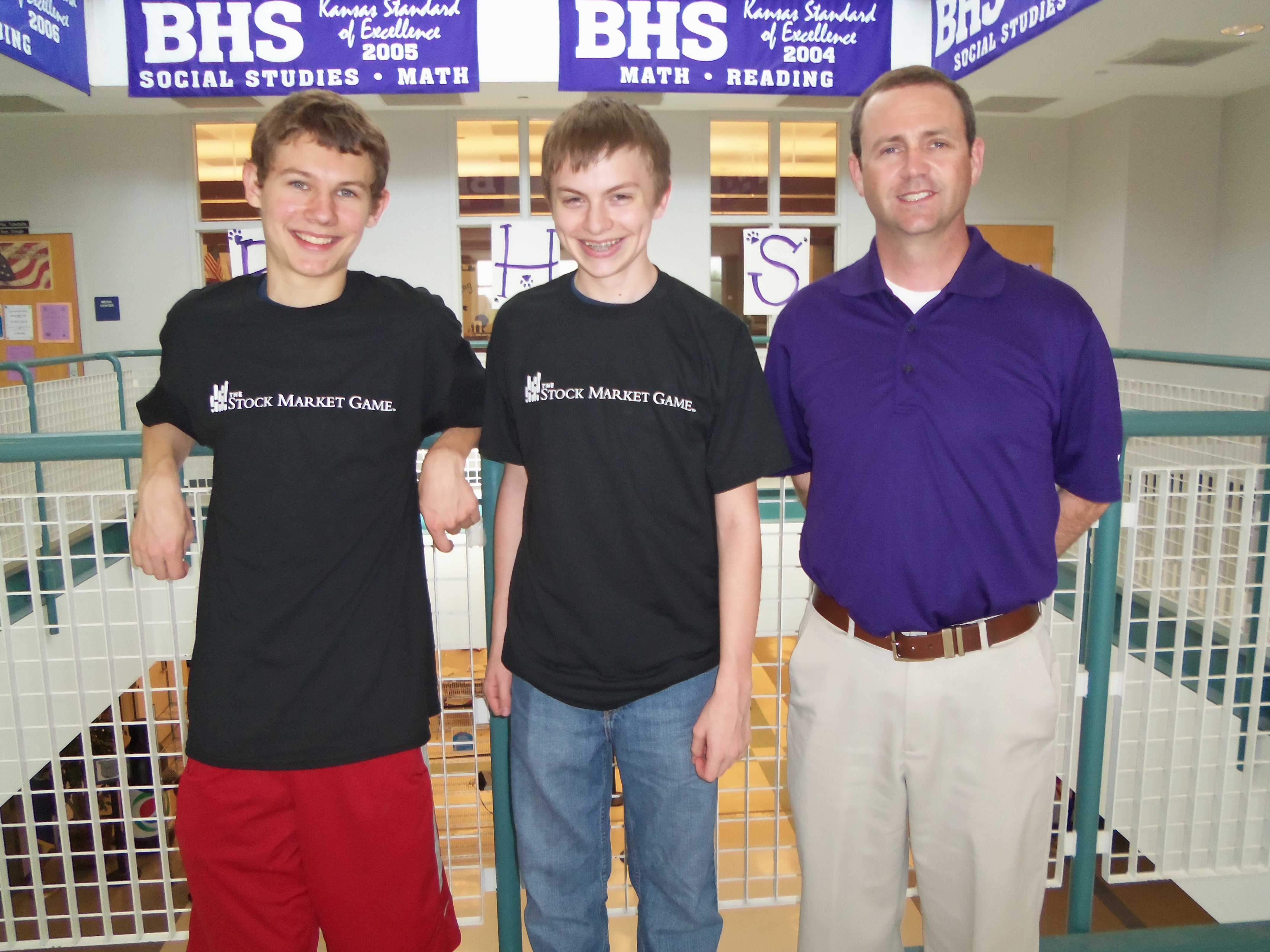 This three-member team participated in the Stock Market Game sponsored by the Kansas Council on Economic Education, as part of the requirements for Gayle Dempsey’s business management class at Baldwin High School, and it was recognized for ranking in the top 5 percent of all investment portfolios created in the spring semester. From left, are students Devin Shay and Curtis Covert, and principal Rob McKim. Not pictured is student team member Quint Heinecke. Student teams were given $100,000 to invest and were ranked according to their portfolio gains. Gayle Dempsey submitted the photo.