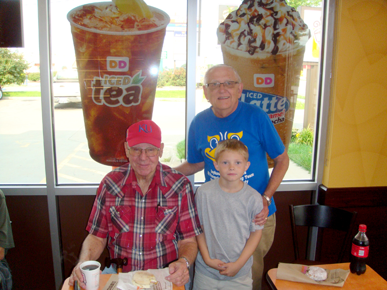 The Old Boys Club, a coffee klatch that meets Monday through Friday mornings at a 23rd Street doughnut shop, includes among its members retired law enforcement officer Dallas Murphy and retired barber Roger Evers. On a recent day, Murphy and Evers worked on recruiting a prospective member, Joey Carter, who is 9 years old. Randy Wiles submitted the photo.