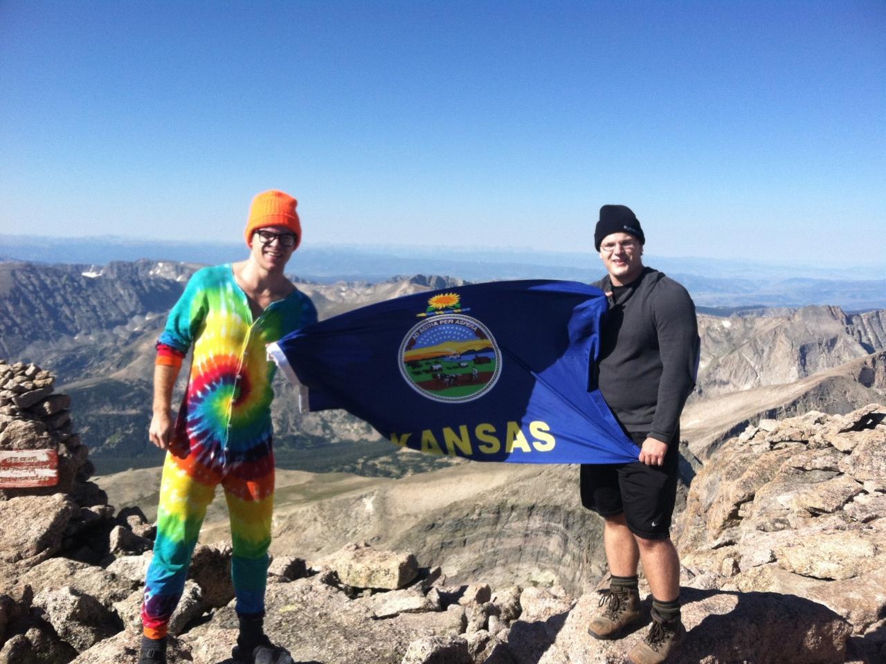 Connor and Spencer Chestnut stand on the summit of Longs Peak in Colorado the morning of Aug. 19. Connor and Spencer are the sons of Rob and Micki Chestnut, of Lawrence. Rob Chestnut submitted the photo.