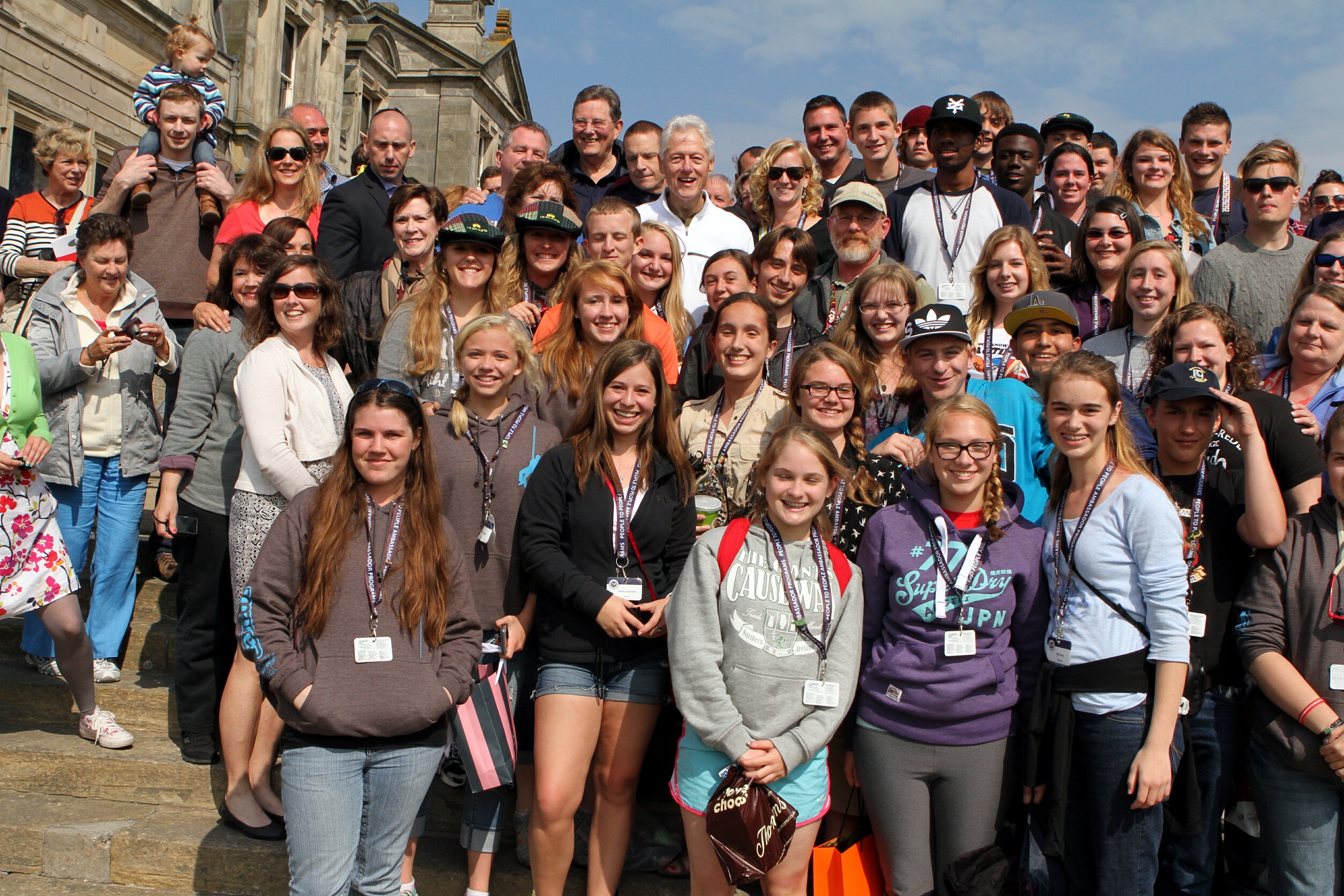 Tom Sigvaldson and Mara Waltz, of Baldwin City, and 35 high school students traveled with People to People Student Ambassadors to Great Britain and Ireland in June. They are pictured here in St. Andrews, Scotland, after meeting former President Bill Clinton, near the top in the white shirt, as he finished his round at the famous golf course. Tom Sigvaldson submitted the photo.
