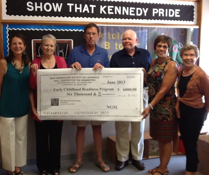 The New Generation Society of Lawrence presents a donation to Cris Anderson, principal of Kennedy Elementary School, for the Early Childhood Readiness Program. From left are Susan Esau, Jacqueline Gadt, Perry Warren, Gerald Smith, Anderson and Carolyn Phillips. Perry Warren submitted the photo.