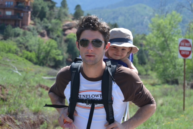 John Gravino and his son, Johnny Gravino, 1, hike near Breckenridge, Colo., with John wearing his Sunflower Outdoor & Bike Shop T-shirt. Vicki Gravino submitted the photo.