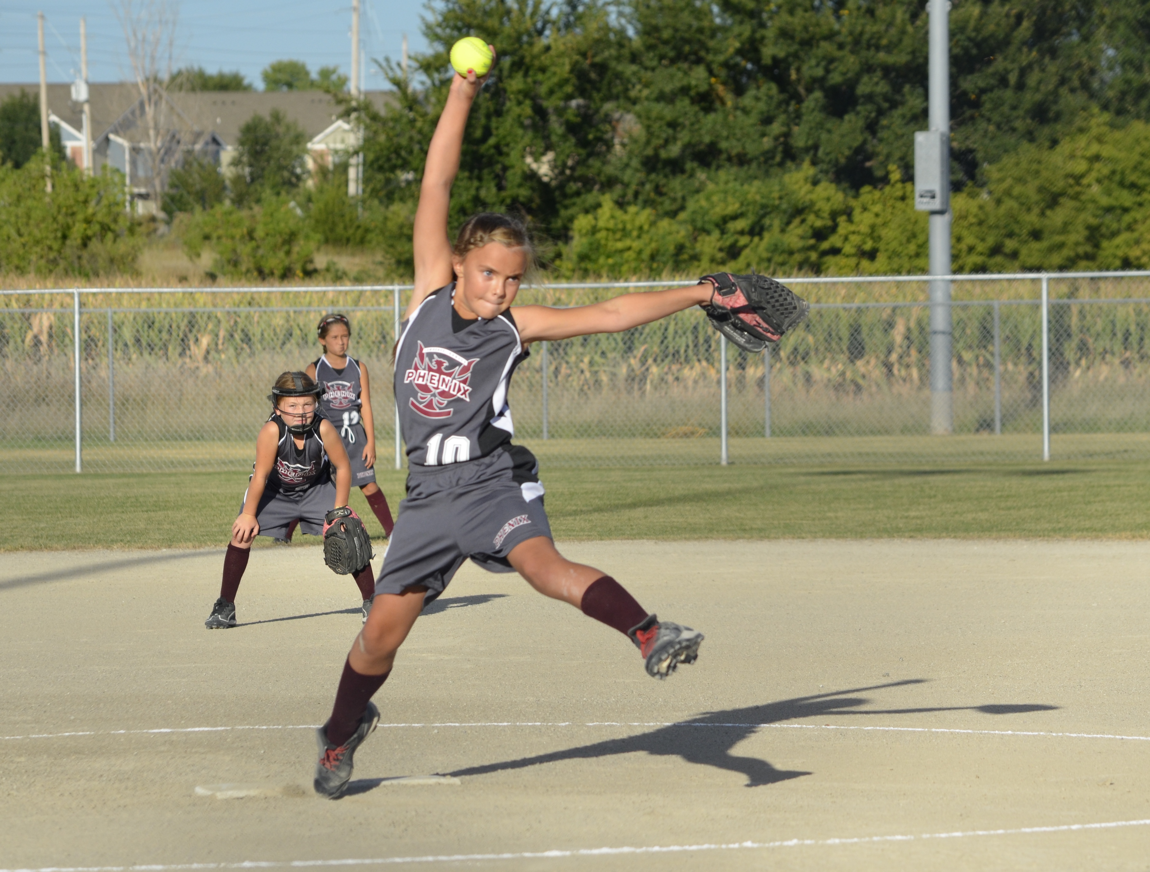 Kay Lee Richardson, 9, makes her pitching debut in the Lawrence Phenix Fall Challenge Tournament at the Clinton Lake Youth Sports Complex. The team finished fourth in the 10U “C” Division. Stephanie Richardson submitted the photo.