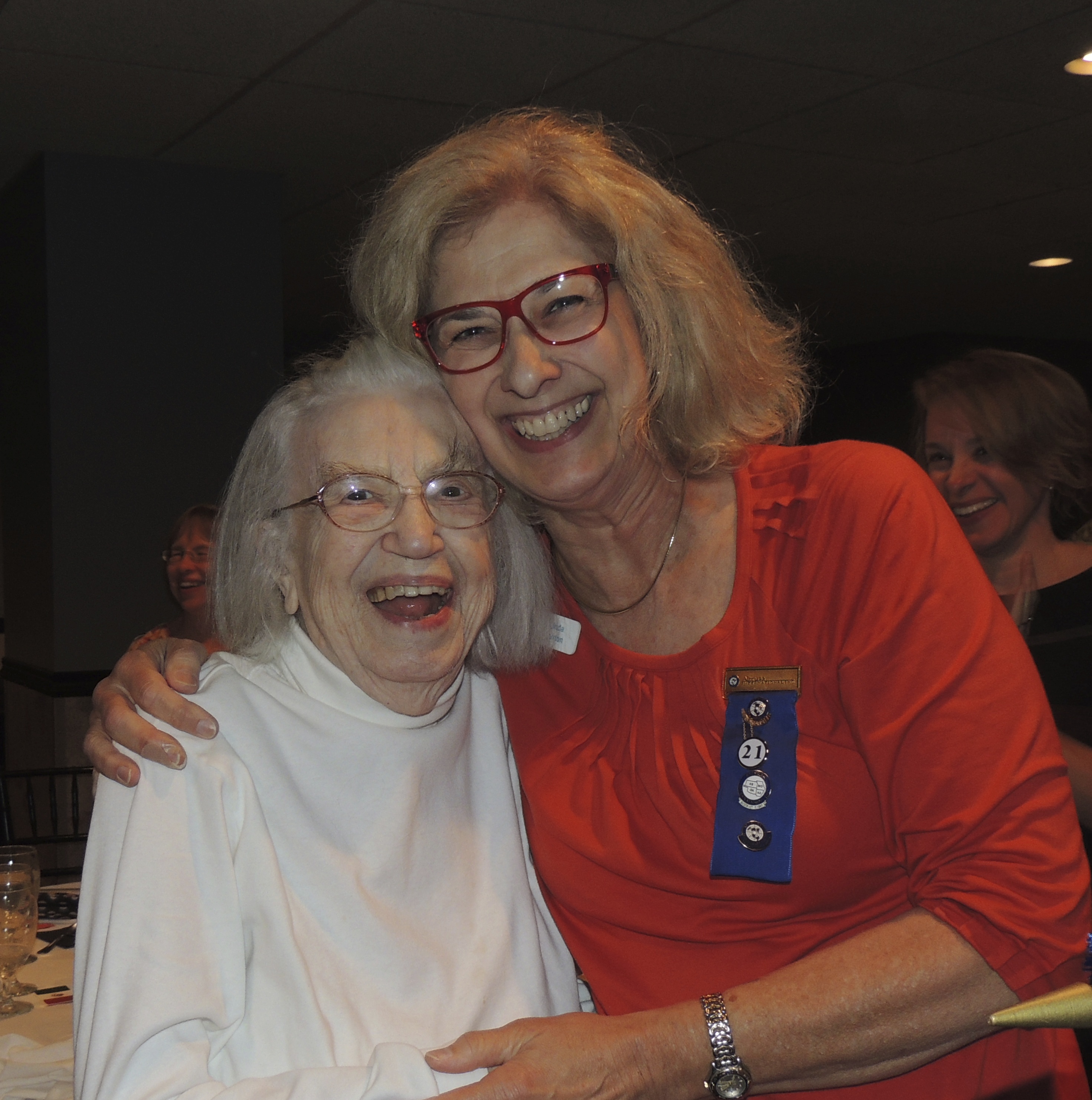 Eleanor Symons, left, is congratulated by Linda Burton for her 40 years of membership in the Altrusa Club of Lawrence during the Sept. 18 meeting at Maceli's. Sammie Messick took and submitted the photo.
