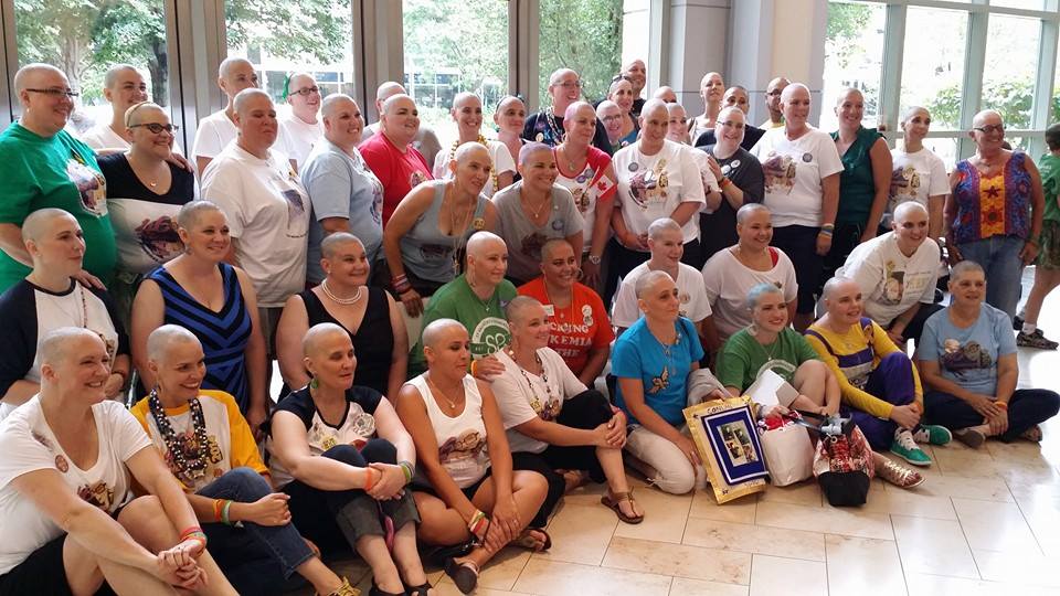 At the 46 Mommas event in Boston on Sunday, Lawrence office manager Karla Knudson got her head shaved in honor of her 17-year-old daughter, Annika, who had cancer in 2009. Knudson raised more than $2,500 for the St. Baldrick's Foundation, the largest private funding supporter of childhood cancer research in the U.S. The event features 46 mothers (pictured) of childhood cancer survivors going bald to raise money for cancer research.
