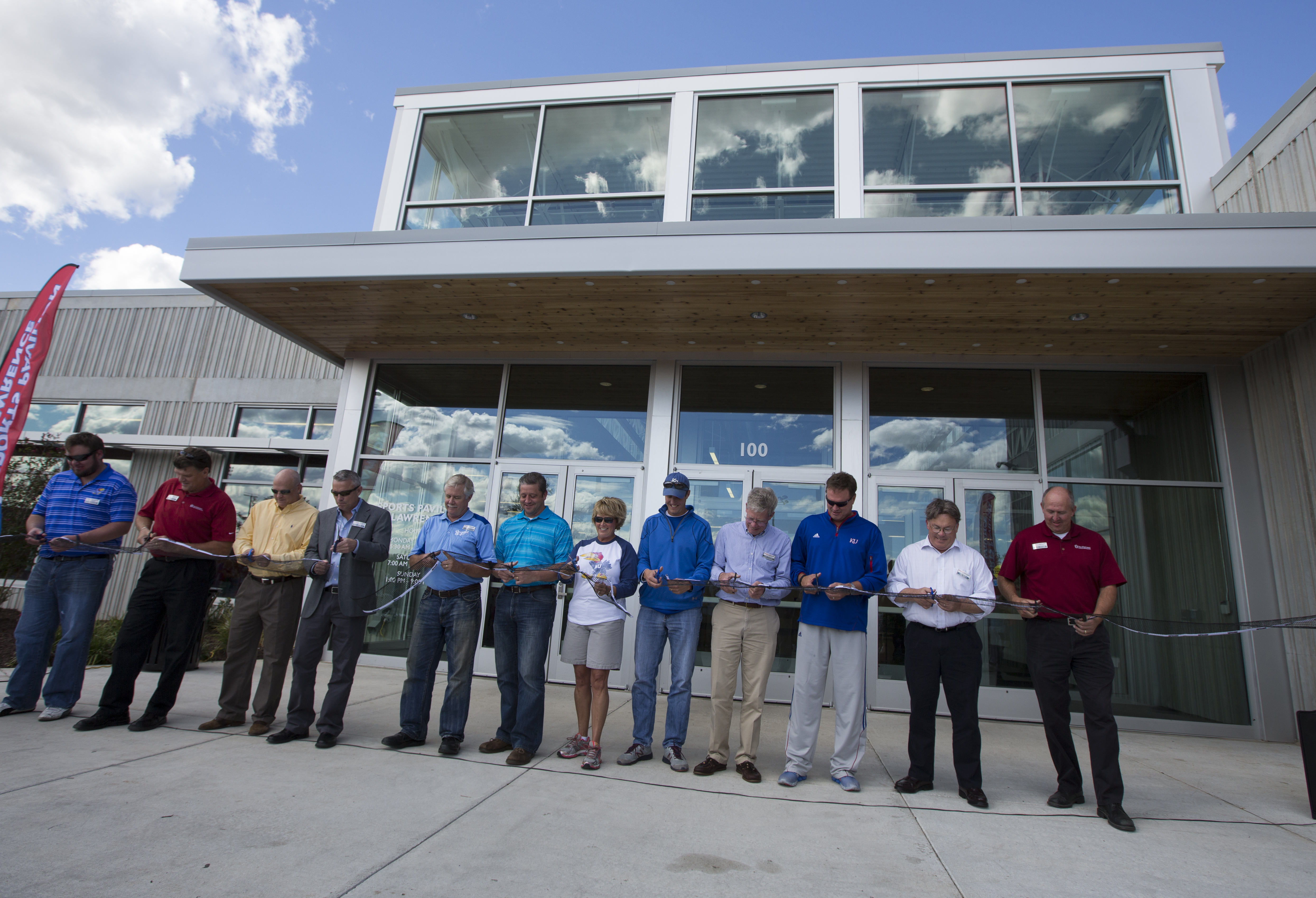 The grand opening of the new Sports Pavilion Lawrence included a ribbon cutting ceremony, Sunday, Oct. 5, 2014.