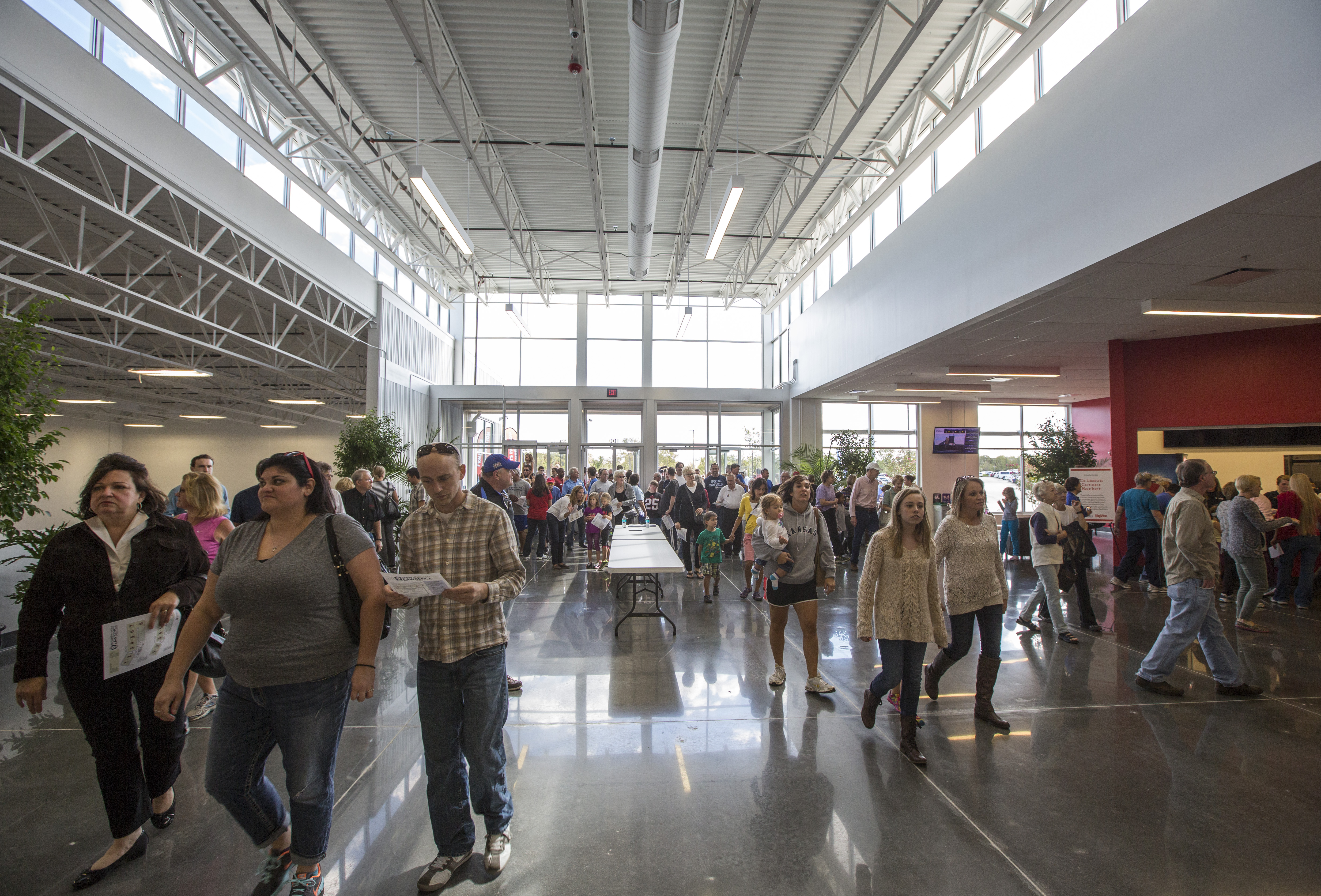 More than one thousand Lawrencians flooded into the new Sports Pavilion Lawrence at Rock Chalk Park for the city’s grand opening celebration of the facility Sunday, Oct. 5, 2014.