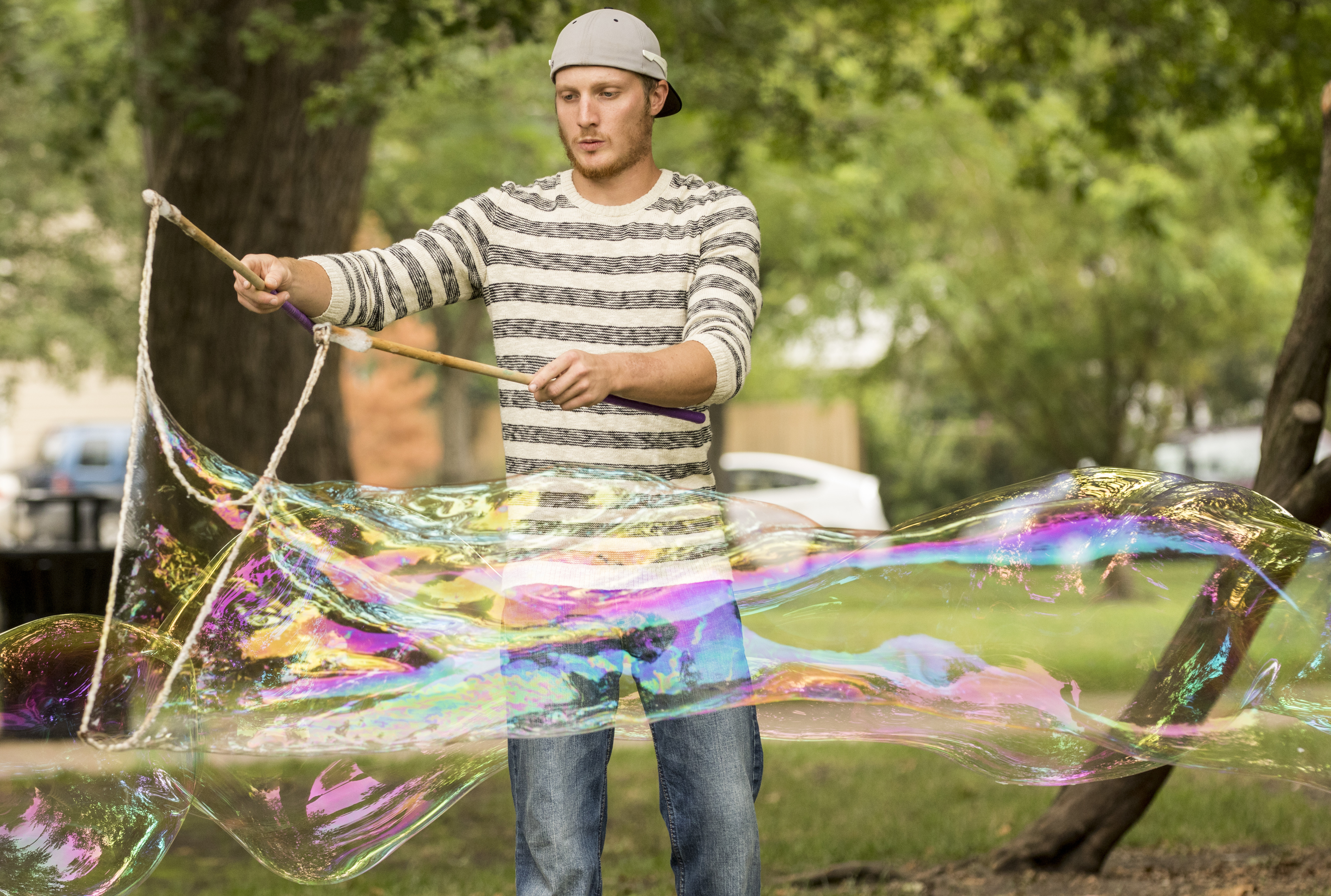 Evan McGeorge, of Lawrence, uses a bubble wand to create a massive bubble at the 2015 Fall Arts and Crafts Festival on Sunday in South Park in downtown Lawrence. The festival featured music, food, giant bubbles, mini horse rides and, of course, plenty of arts and crafts for everyone.
