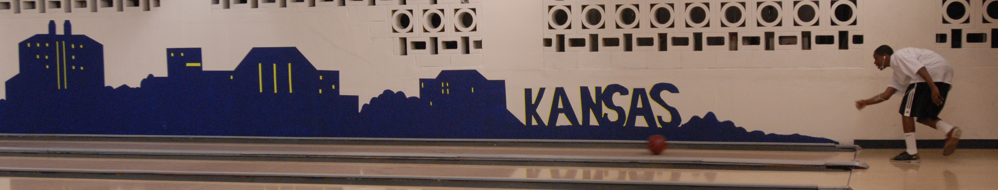 A youth participating in the summer Upward Bound program at KU bowls at the Jaybowl in the Kansas Union. The bowling alley is a popular spot for KU students to visit and was a haunt of basketball player Julian Wright.