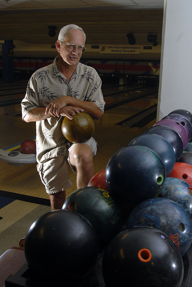KU's Glenn Harrison practices at the Jaybowl. The Frontenac junior was bowling on Wednesday at the Kansas Union.