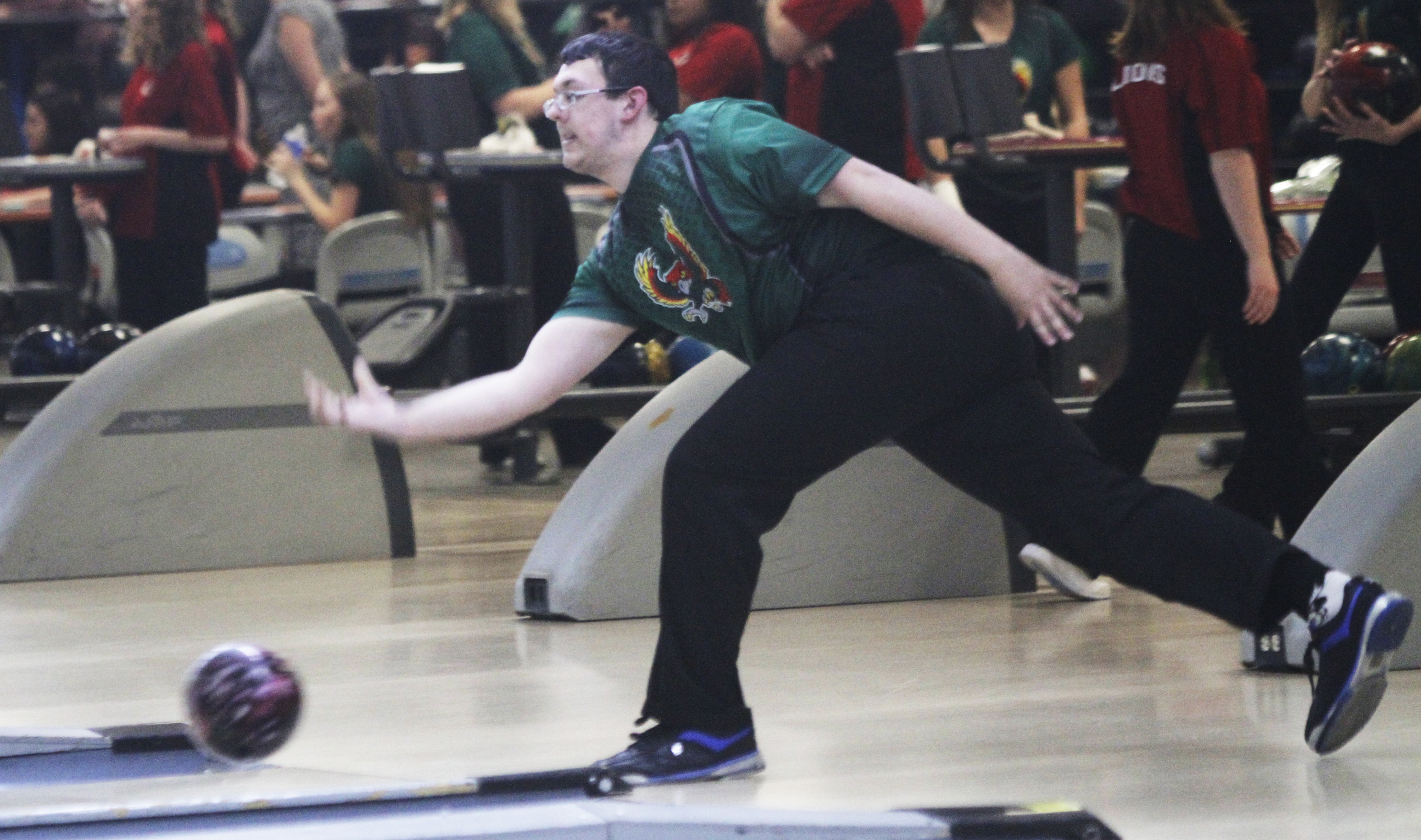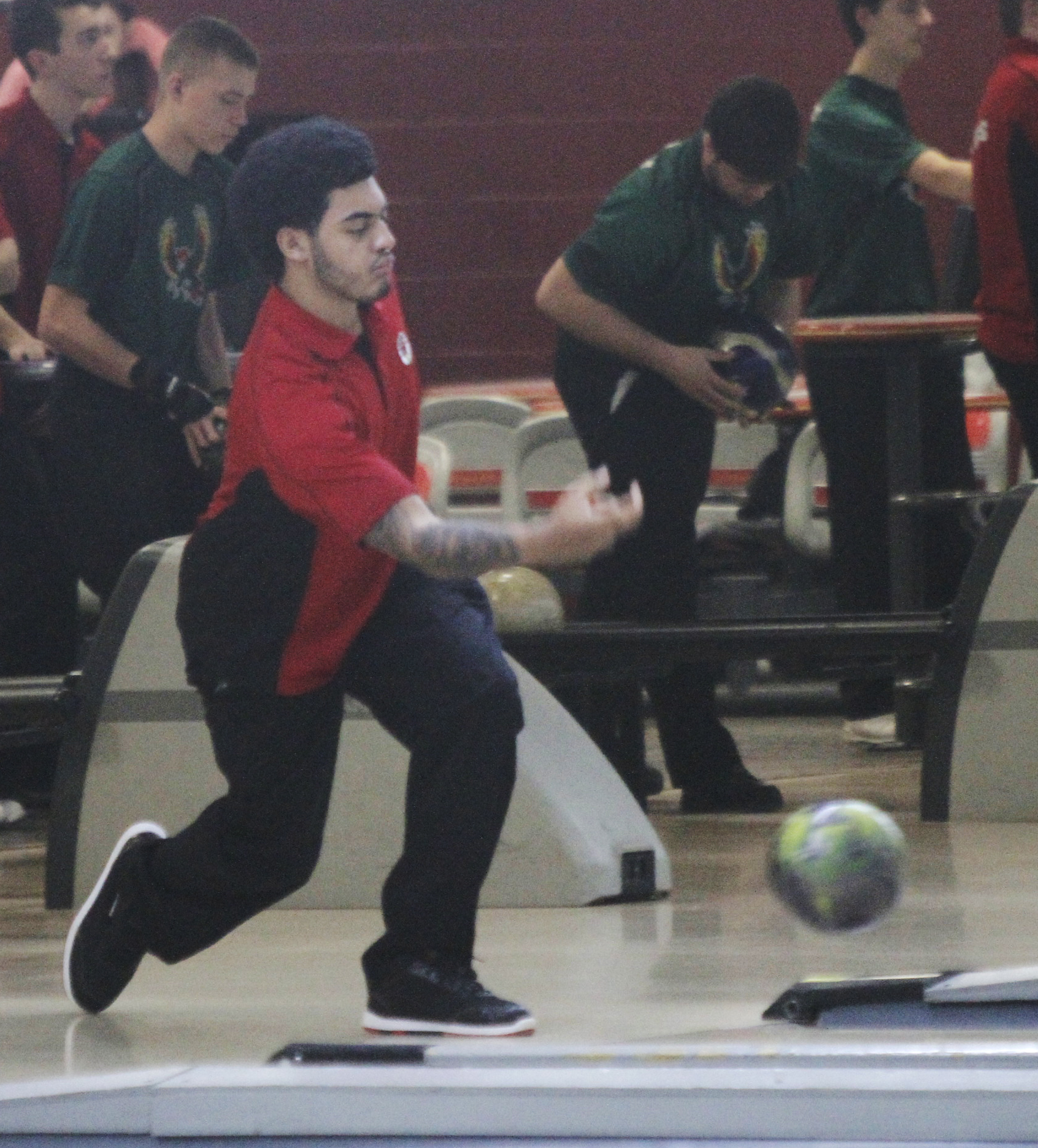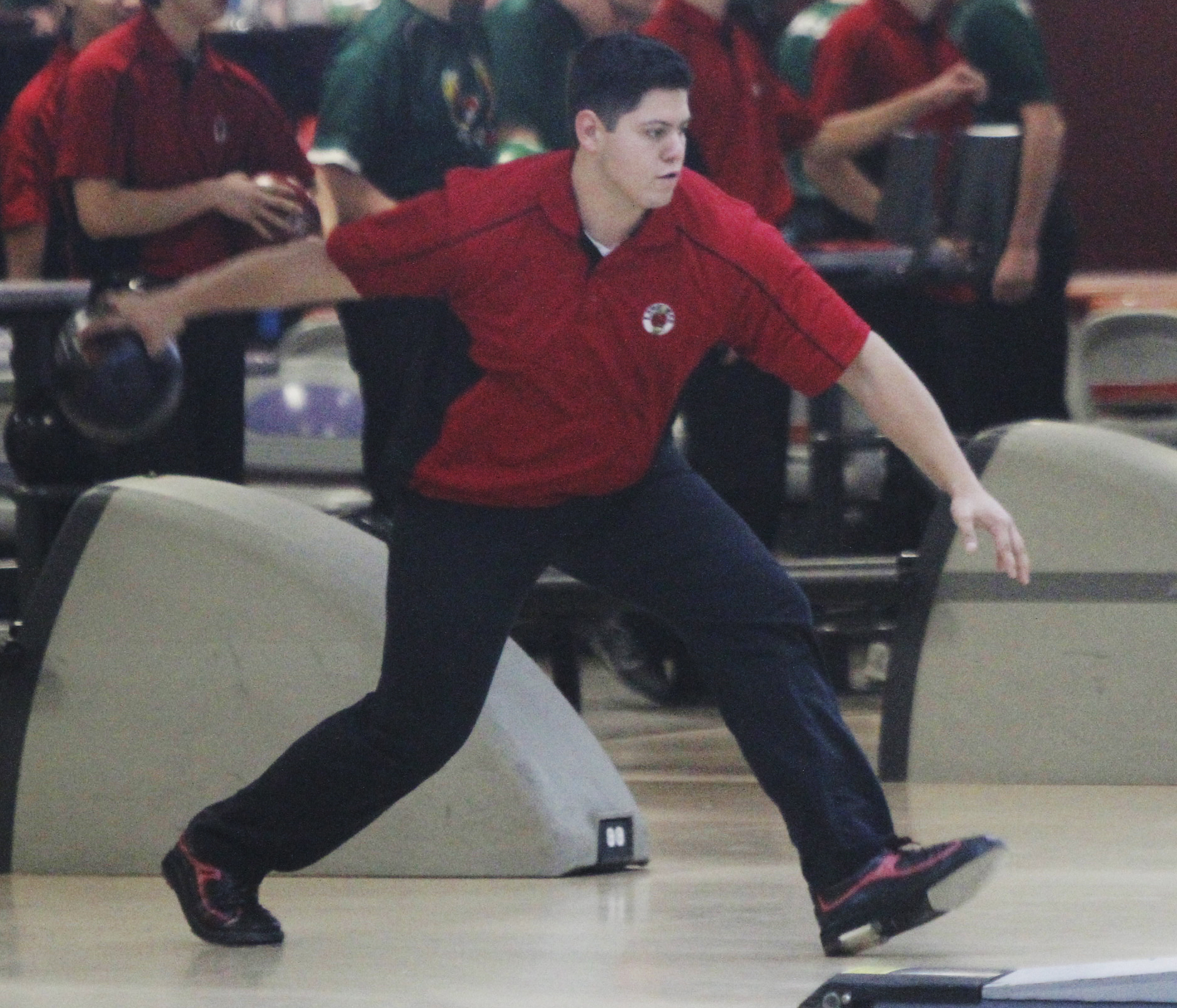 LHS senior Triston Decker bowls in the City Showdown on Monday, Feb. 15, 2016, at Royal Crest Lanes.