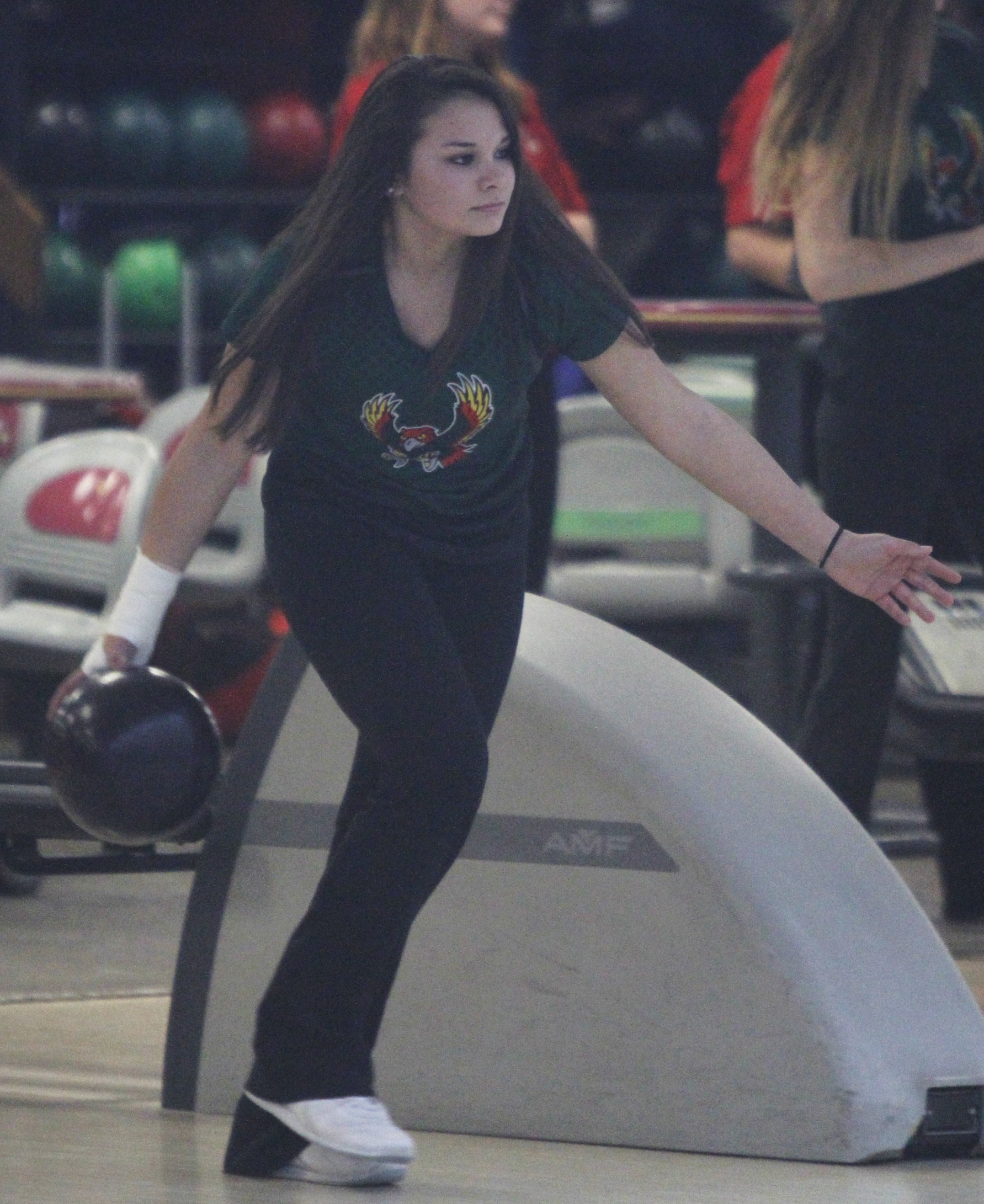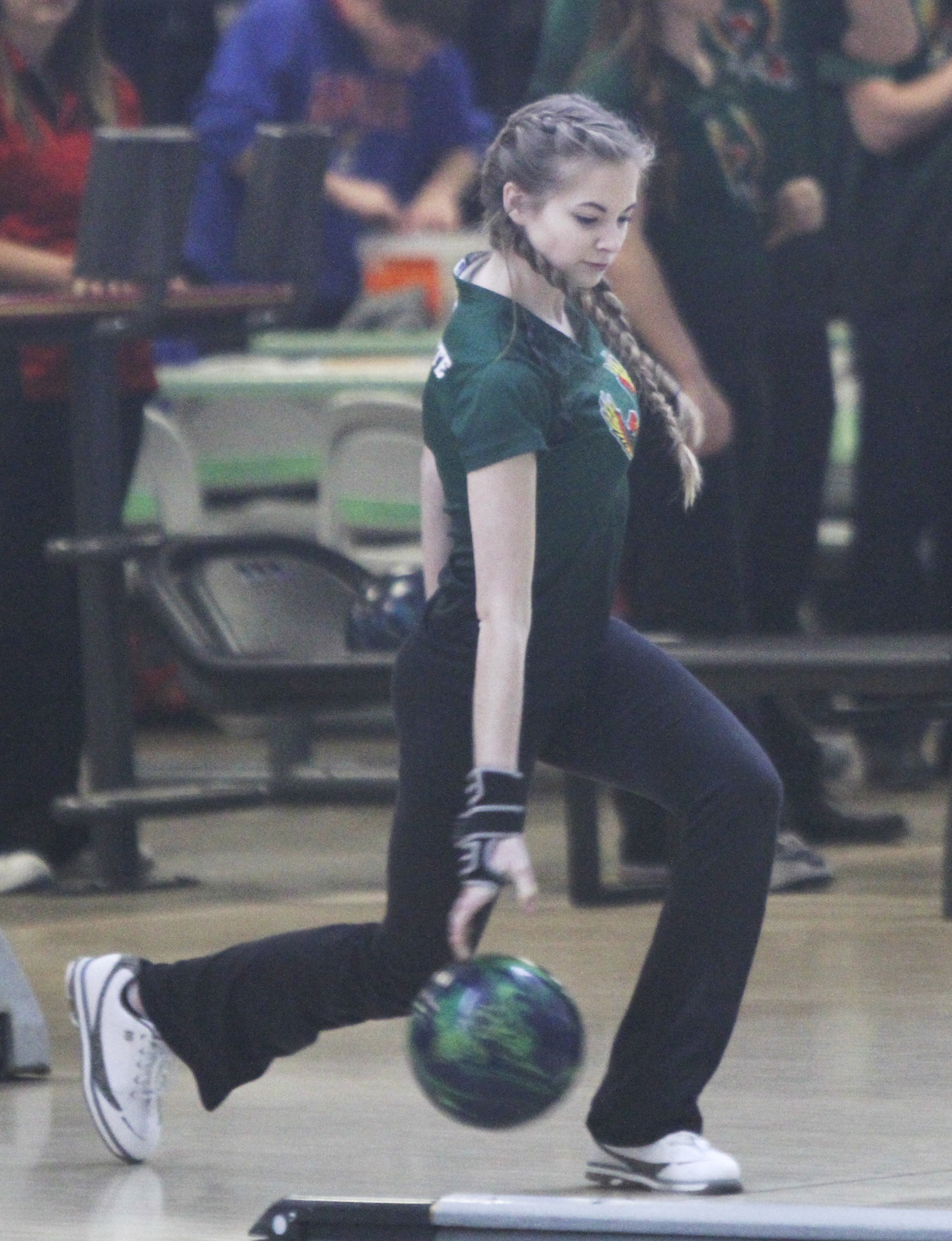 Free State senior Hailey Jump competes in the bowling City Showdown on Monday, Feb. 15, 2016, at Royal Crest Lanes.