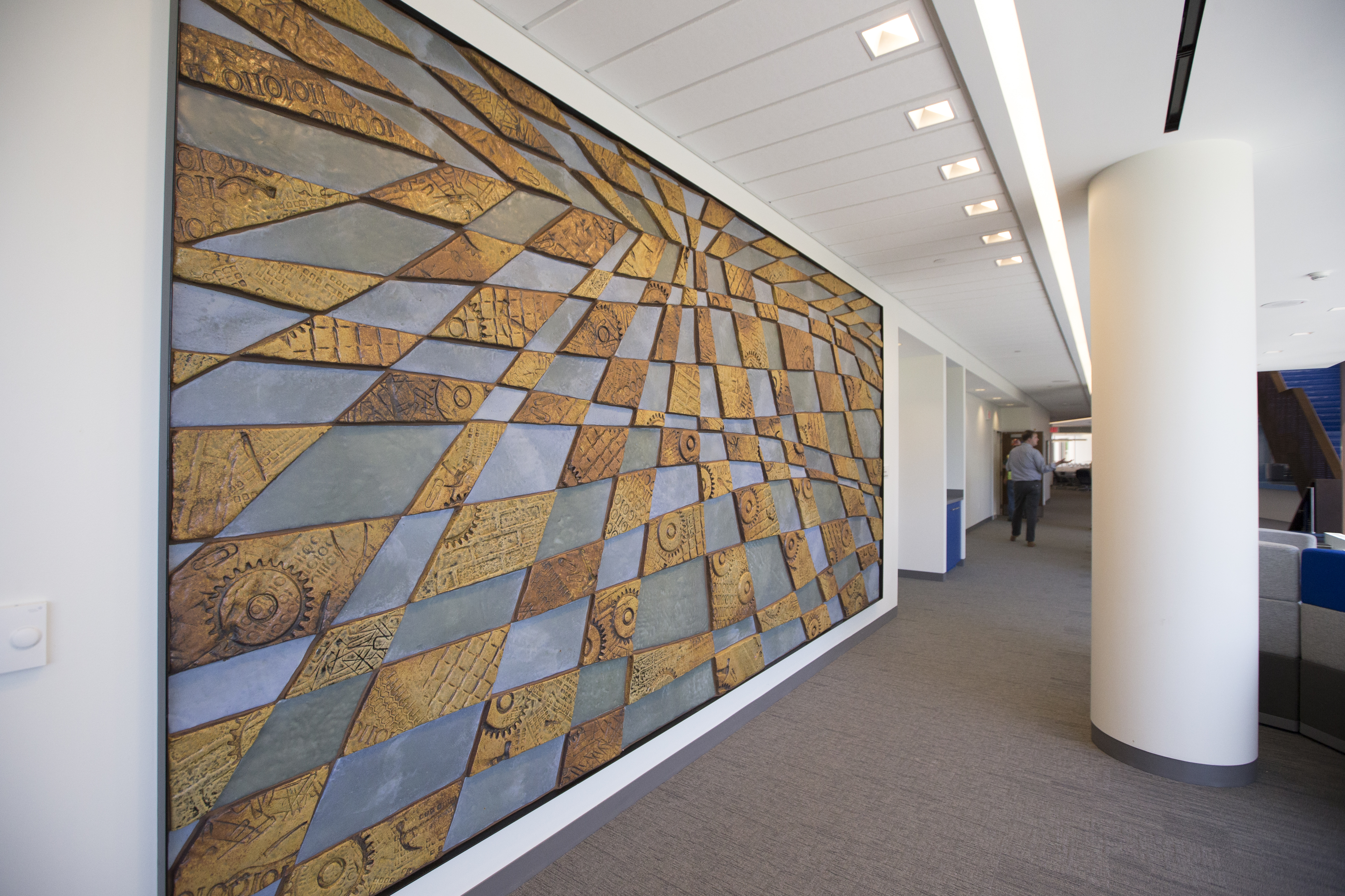 Punch Line by Janet Davidson-Hues hangs above a collaborative space at Capitol Federal Hall on Tuesday, May 10, 2016.