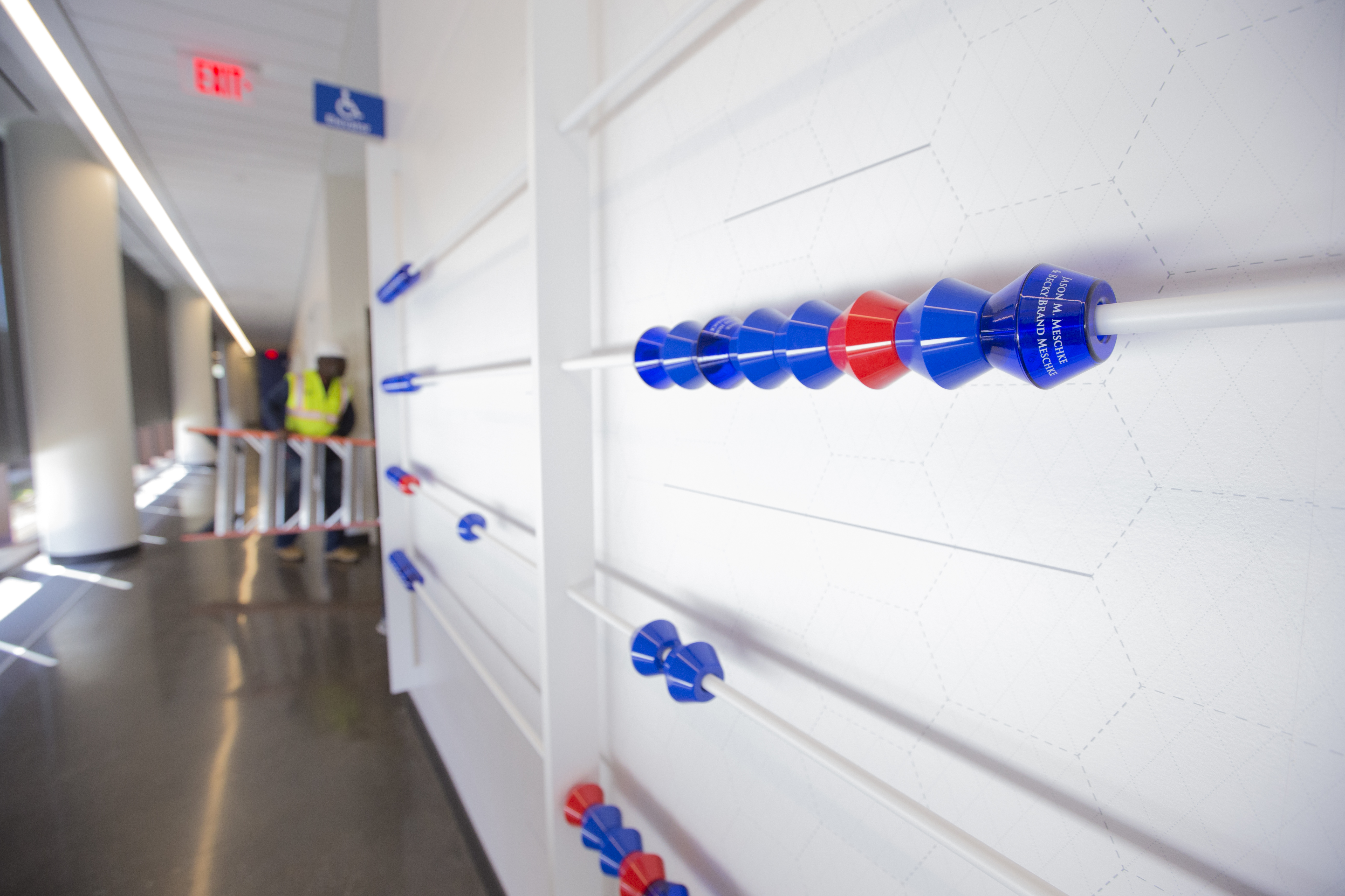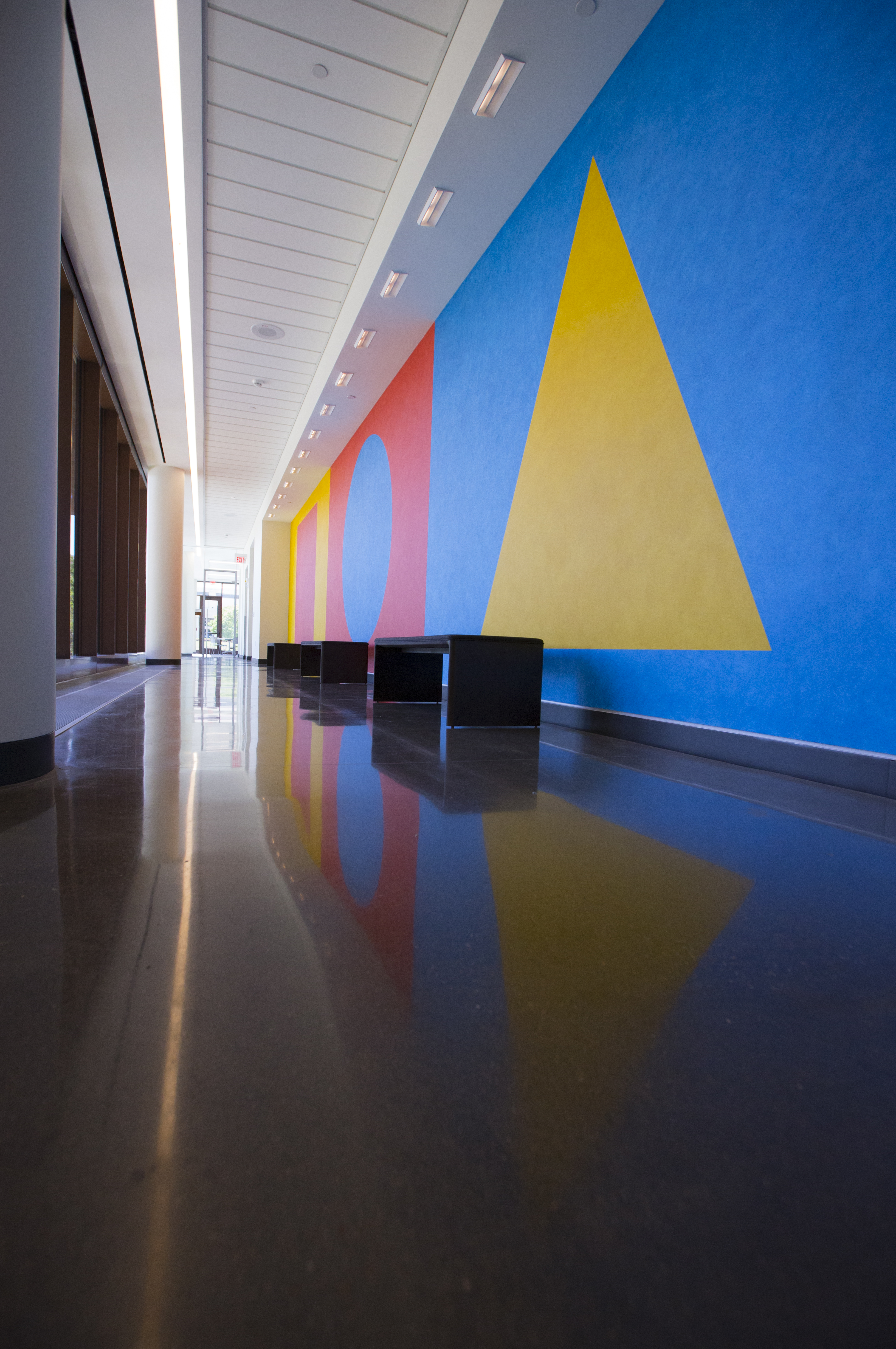 Wall Drawing 519 by artist Sol LeWitt extends along a hallway on the first floor of Captiol Federal Hall.