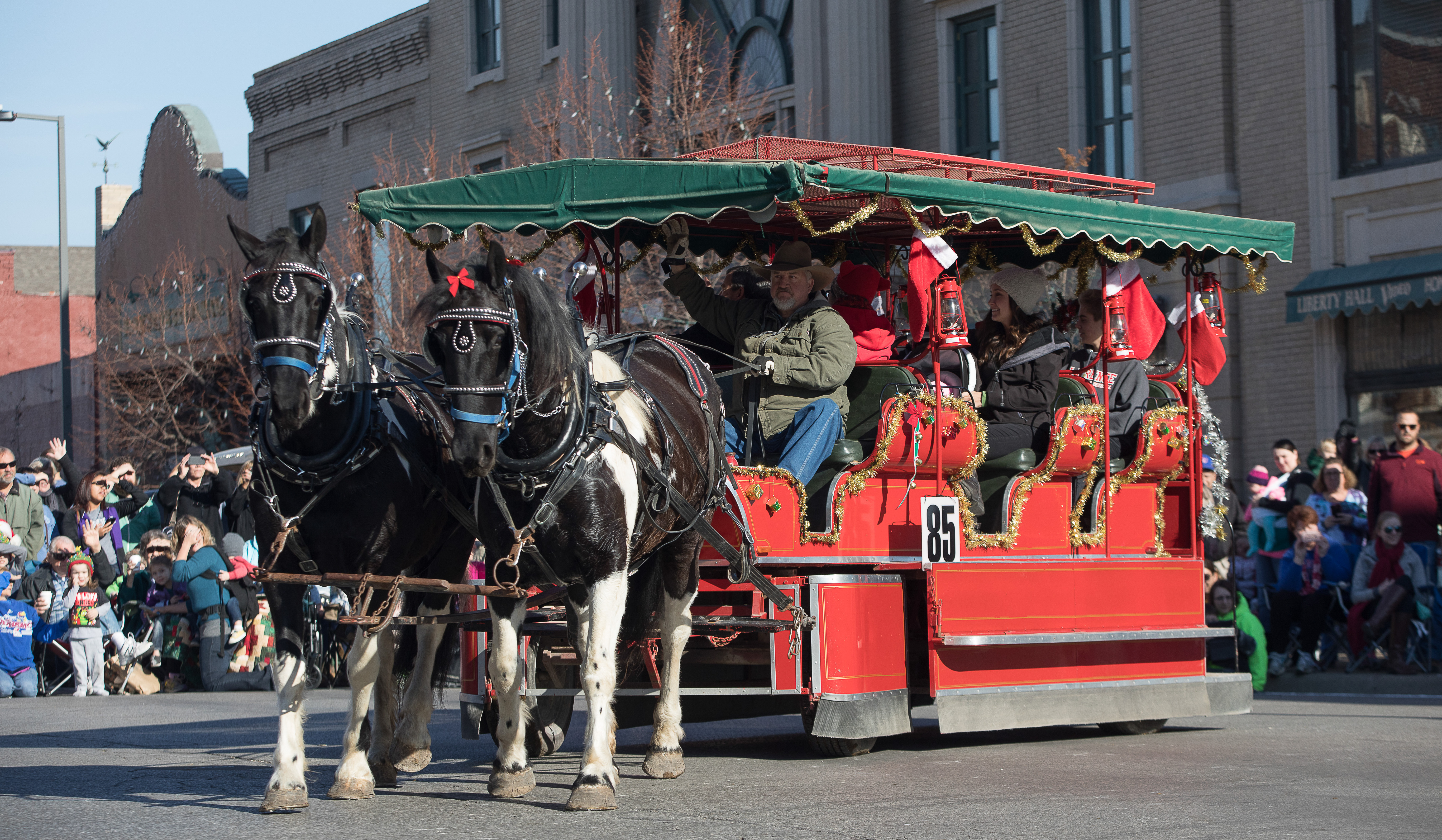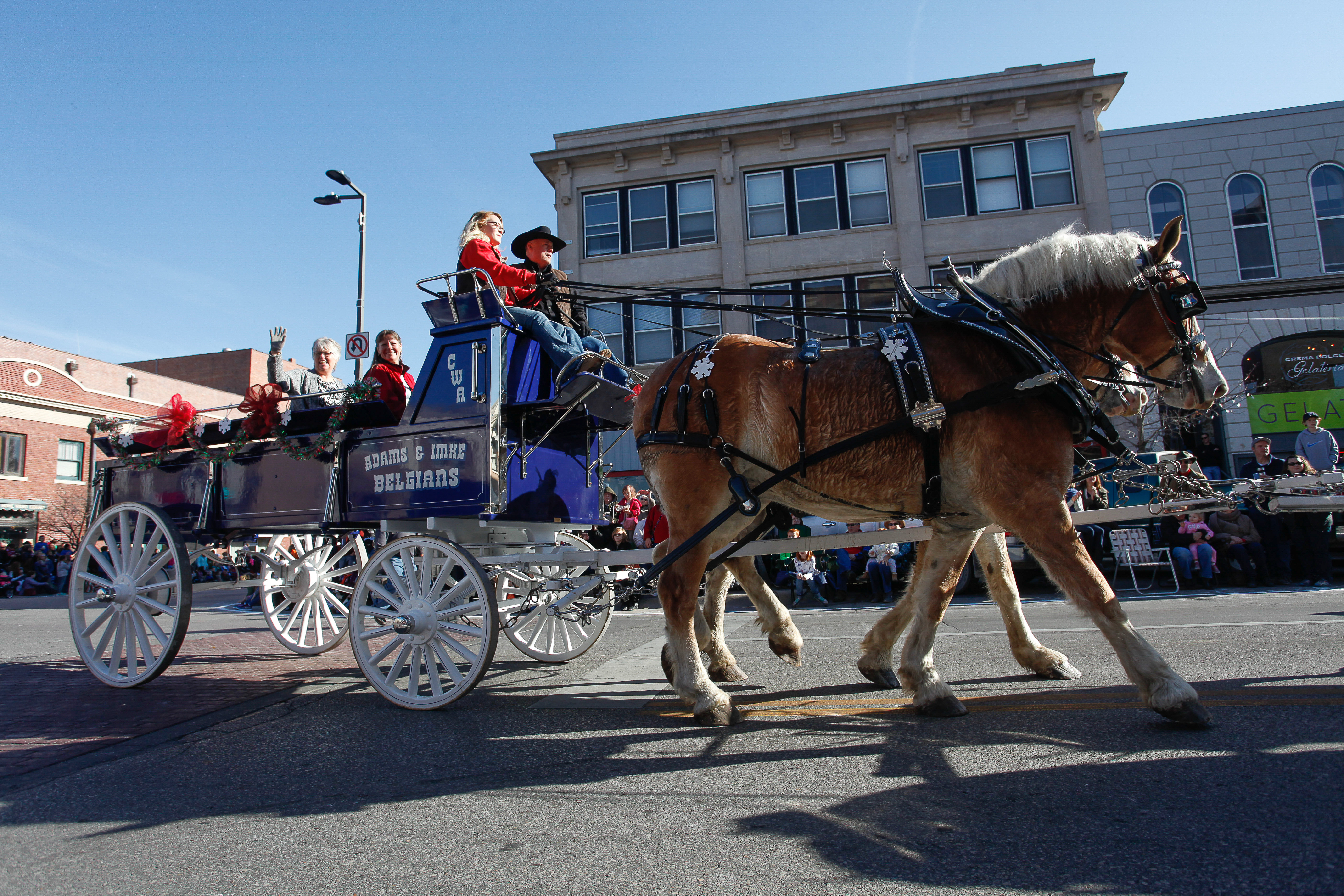 Horses and carriages transport hundreds of participants through downtown Lawrence during the 25th Lawrence Old Fashioned Christmas Parade Saturday, Dec. 2, 2017,