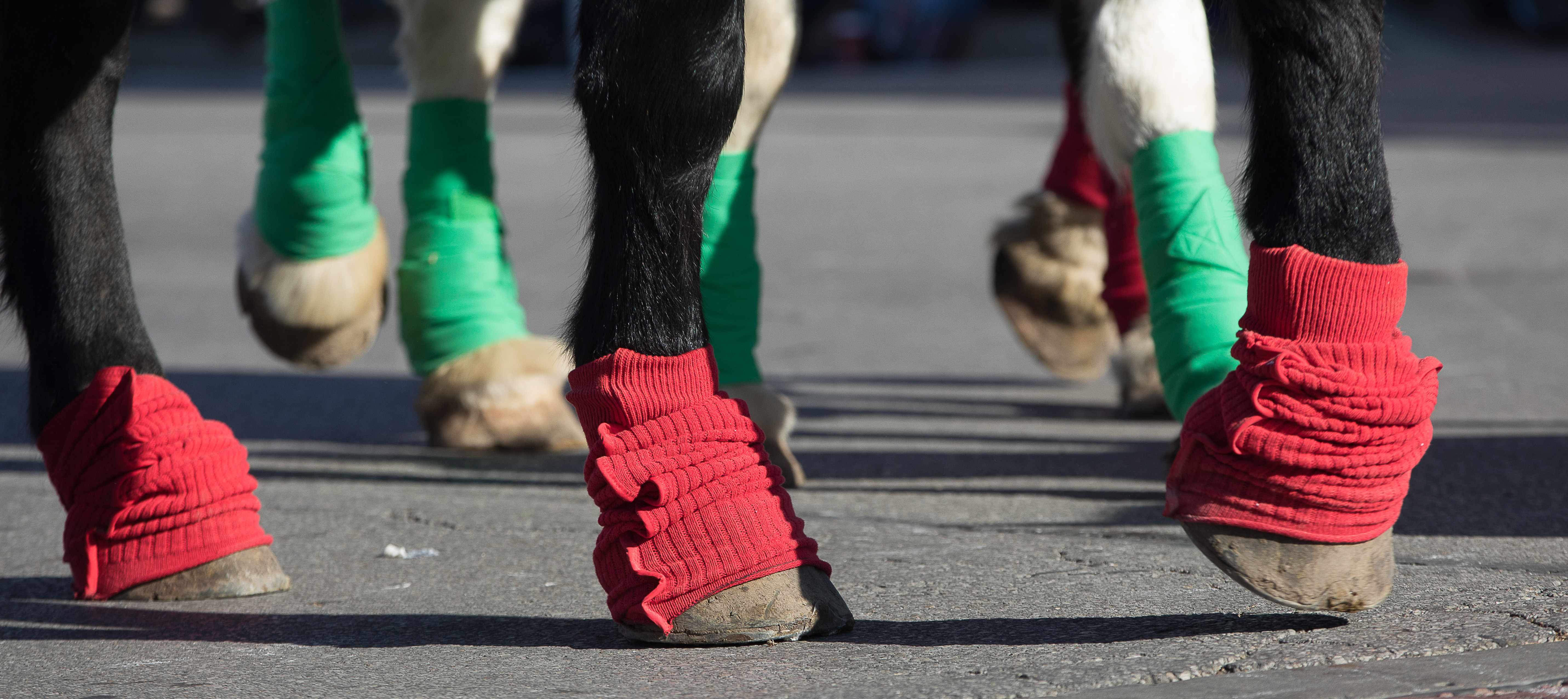 Holiday stocking styles adorn horses' feet during the 25th Lawrence Old Fashioned Christmas Parade Saturday, Dec. 2, 2017.