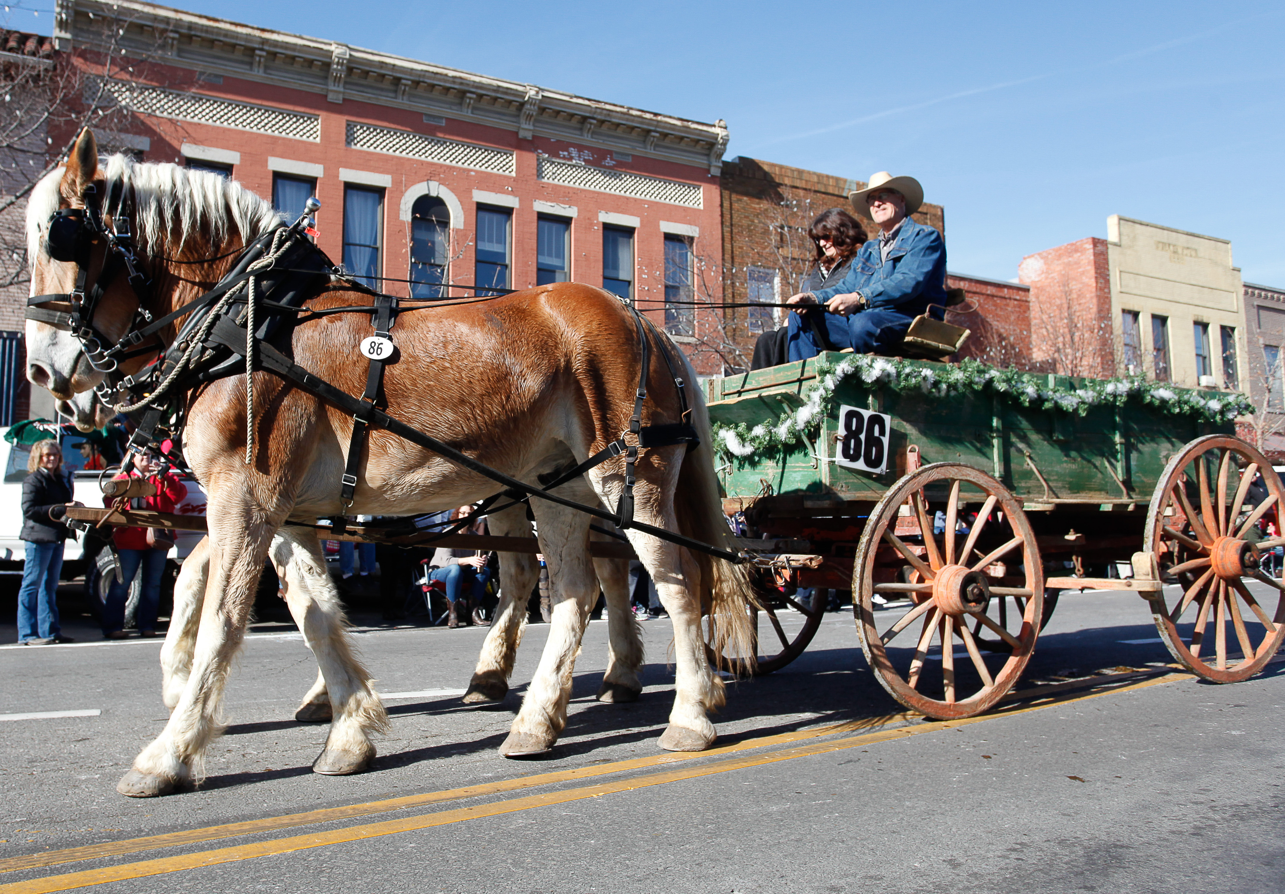 The carriage of Roger and Jackie McCormick, of St. George, passes through downtown in the 25th Lawrence Old Fashioned Christmas Parade Saturday, Dec. 2, 2017.