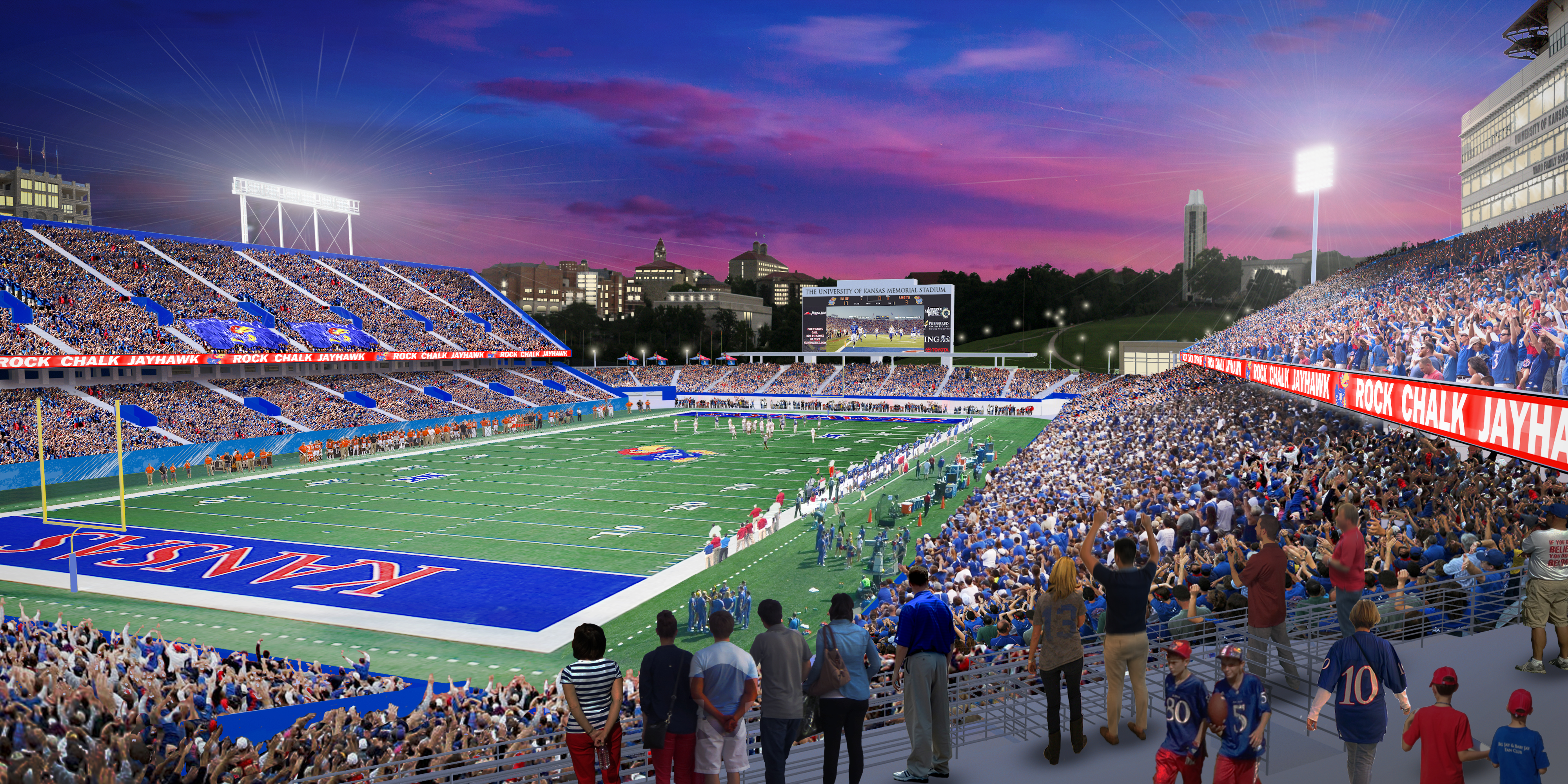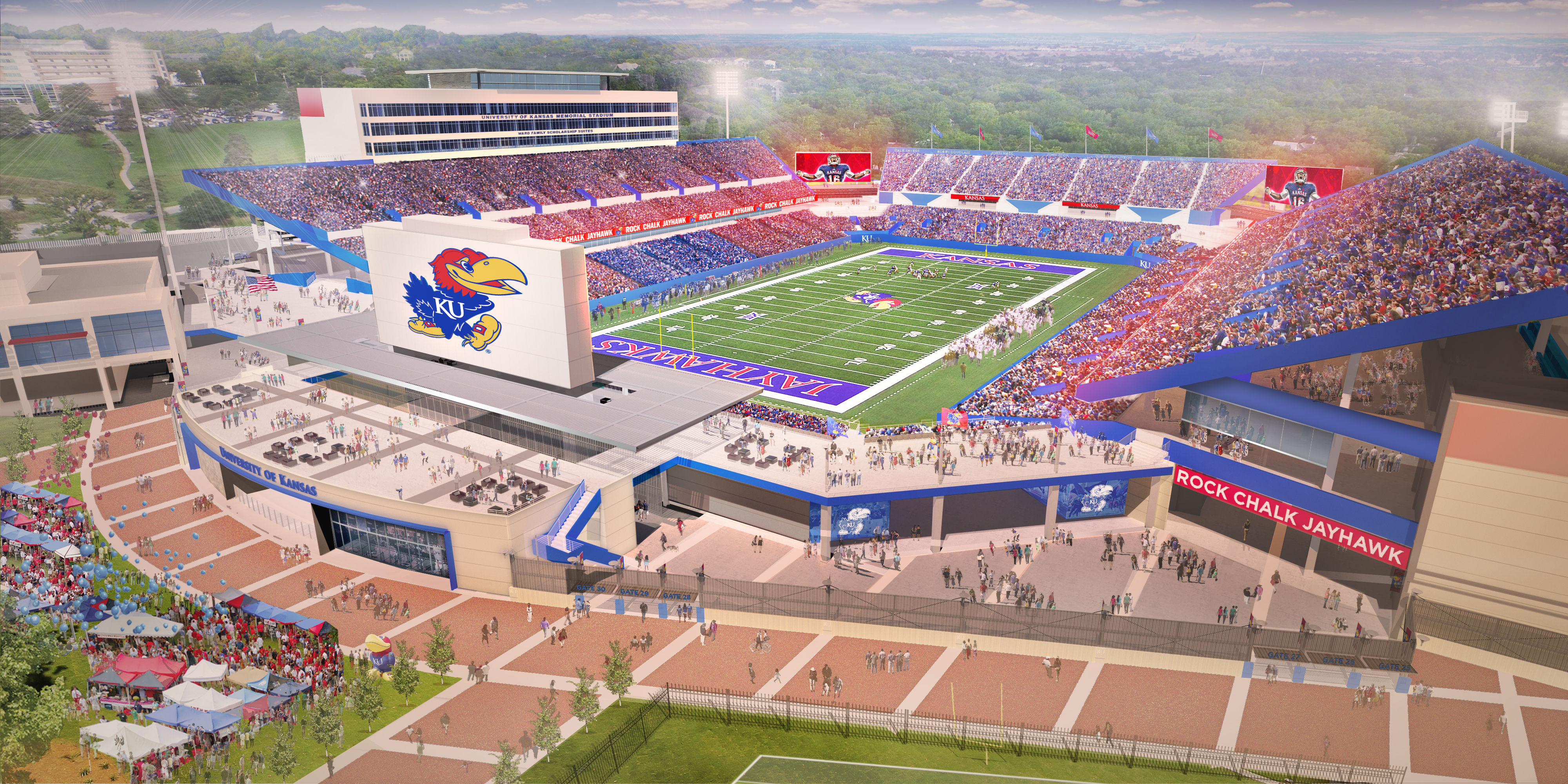 Rendering of the University of Kansas football stadium, at completion of renovation project.