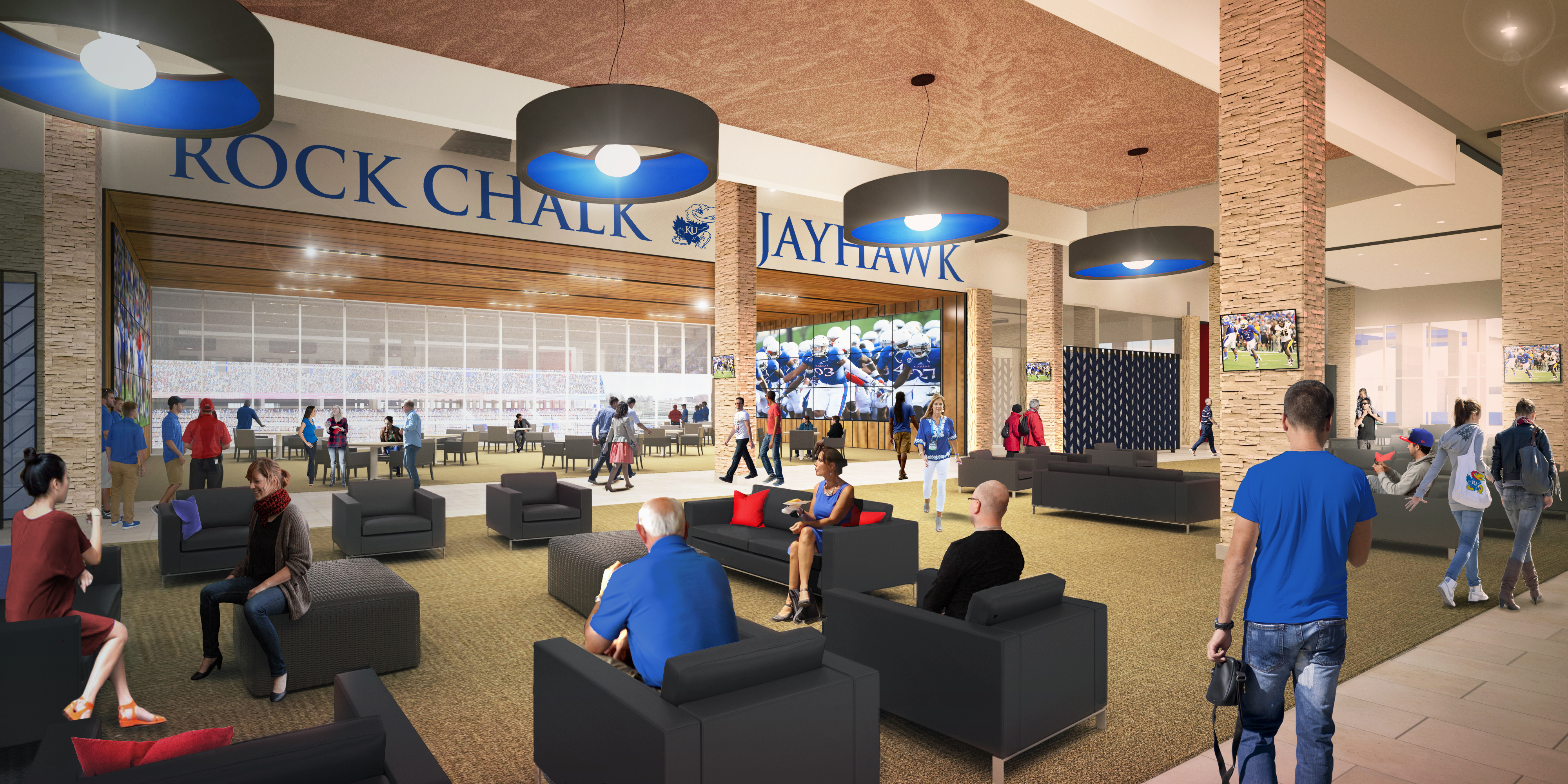 Rendering of Memorial Stadium's west side club lounge, at completion of renovation project.