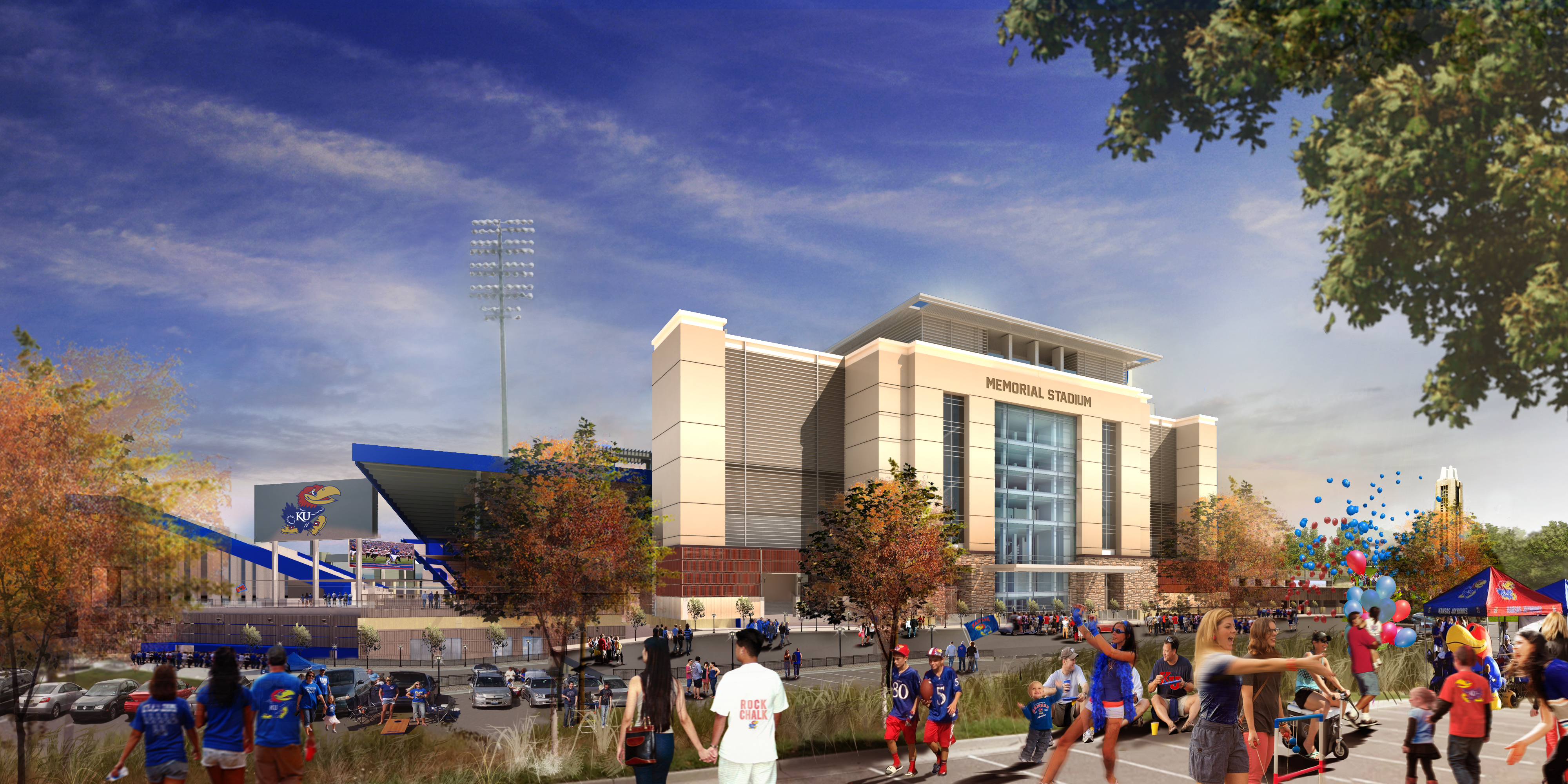 Renderings of what Memorial Stadium and other Kansas Athletics facilities will look like at the completion of KU’s five-year, $350 million “Raise The Chant” fundraising campaign.