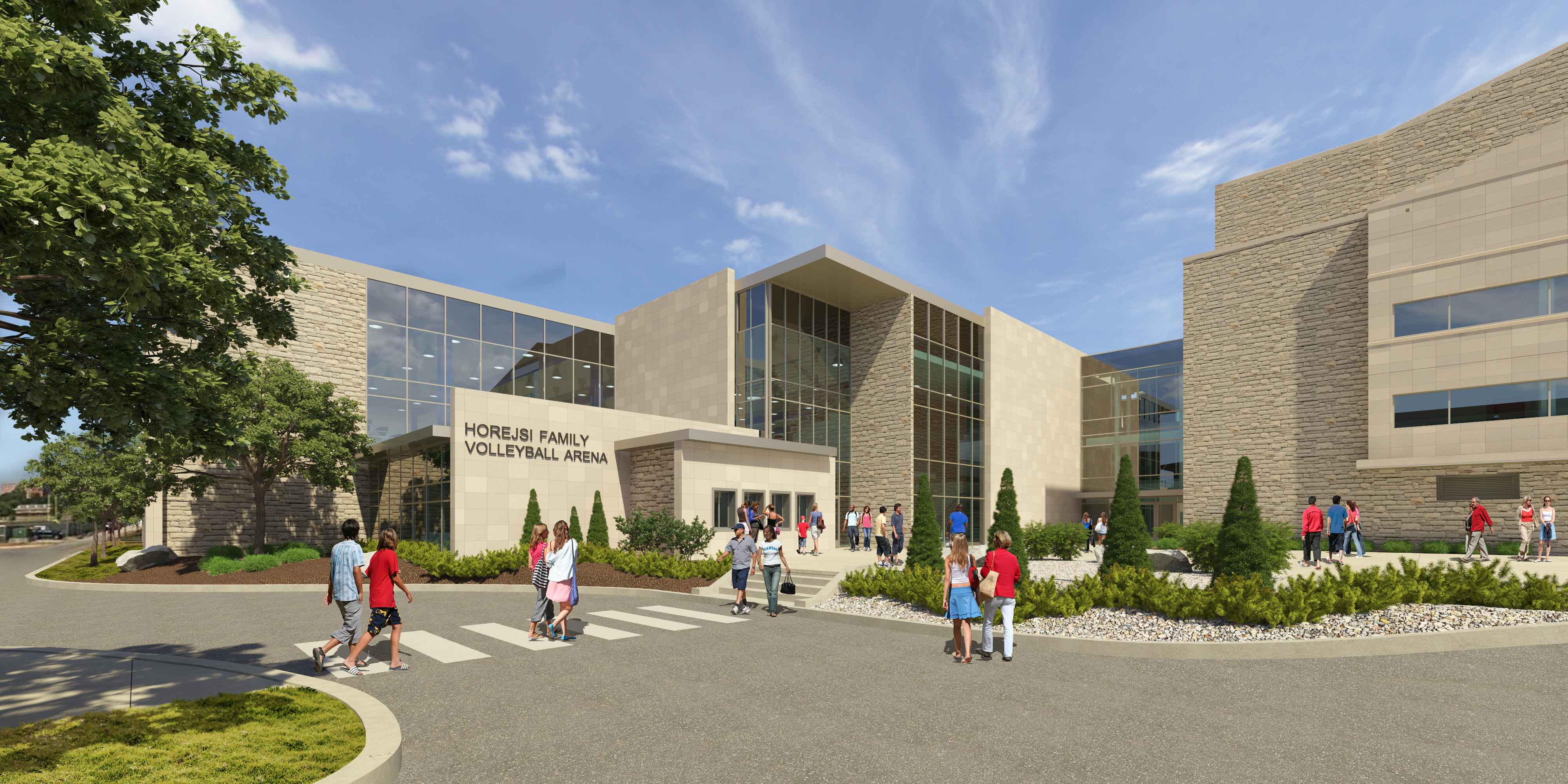 Rendering of Horejsi Family Volleyball Arena exterior, at completion of renovation construction.