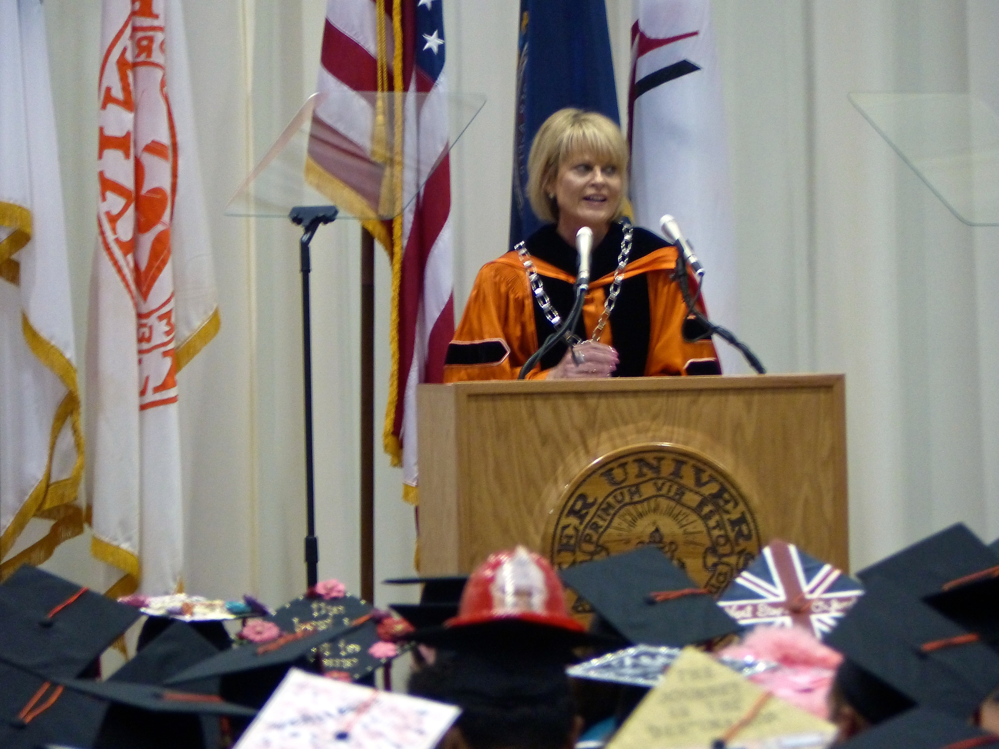 Baker University President Lynne Murray addresses a packed Collins Center on Sunday, May 20, 2018 at the school's spring commencement. Murray told the 103 members of the Class of 2018 that she considered the graduates her first class because they arrived four years ago when she took over leadership of the Baldwin City university.
