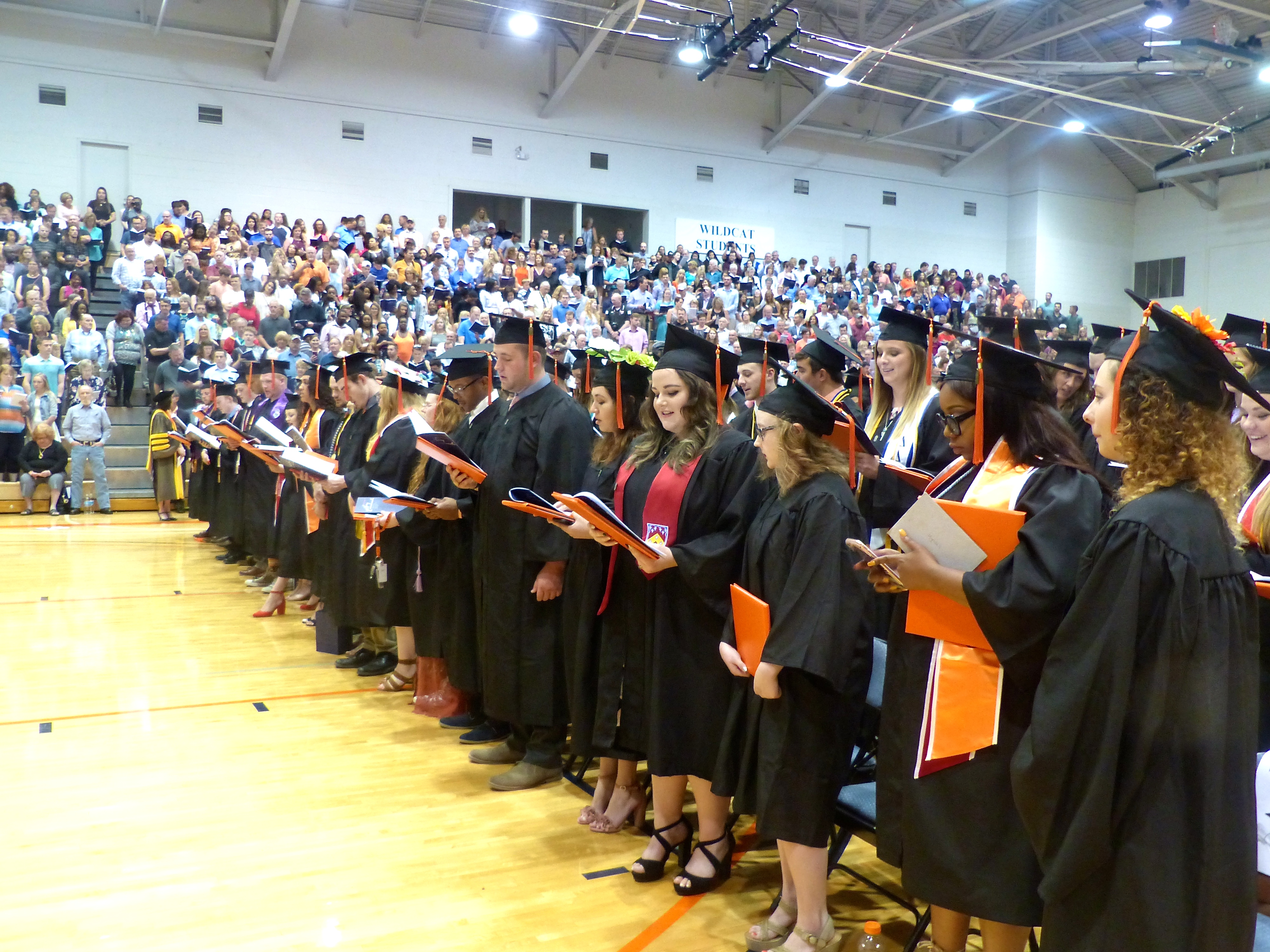 The Baker University Class of 2018 sings the school's alma mater at the end of commencement Sunday, May 20, 2018. The school graduated 103 students from its college of arts and science and college of nursing during ceremonies at the Collins Center on the school's Baldwin City campus.