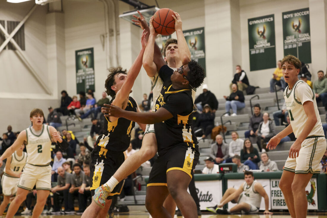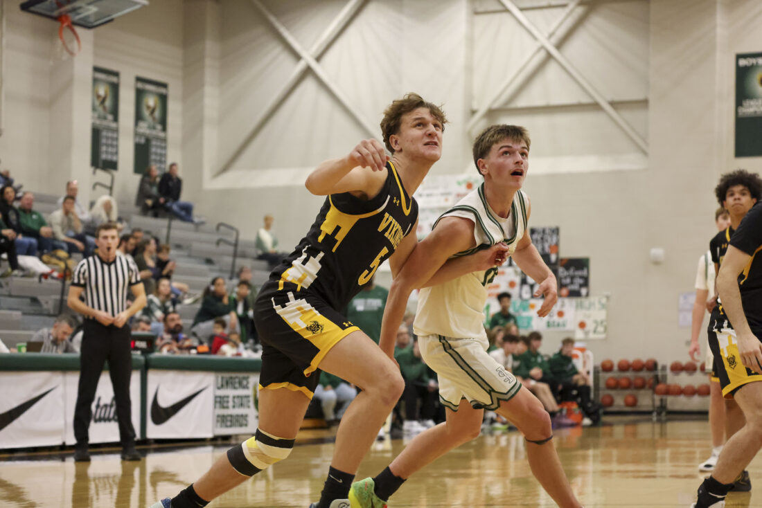 Free State senior Jadon Clock fights for position after a free throw during the Firebirds’ game against Shawnee Mission West on Friday, Dec. 19, 2025, at Free State High School in Lawrence.