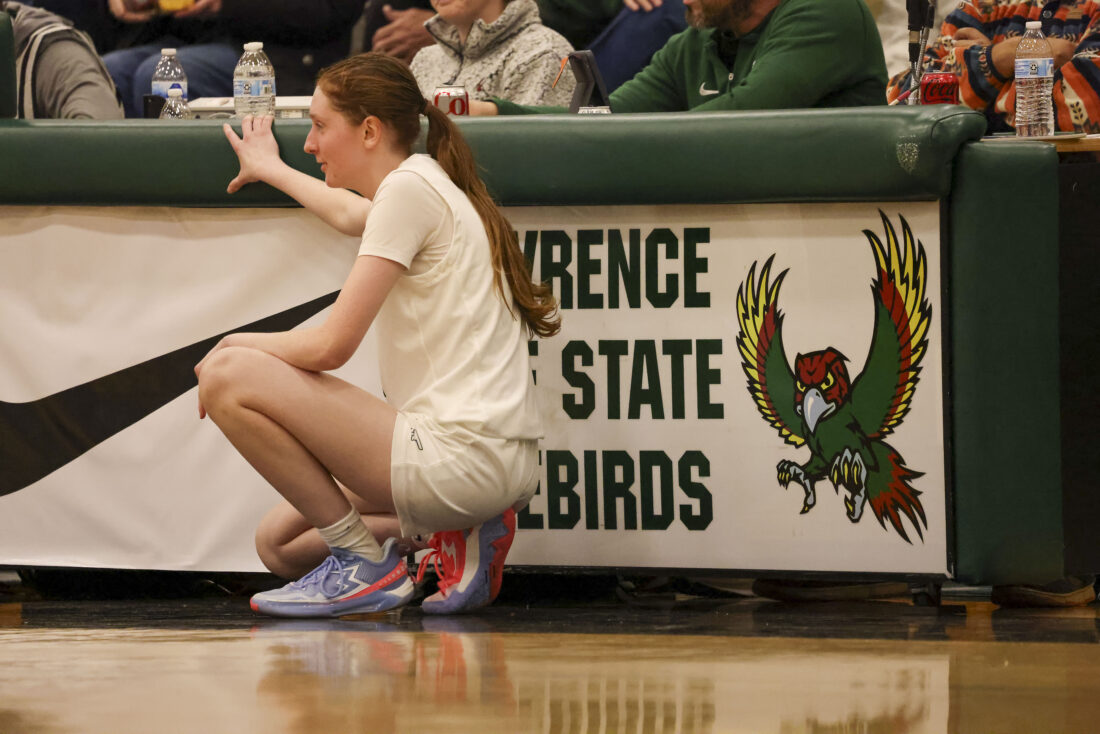 Free State junior Aedri Grooms waits to check in during the Firebirds’ game against Shawnee Mission West on Friday, Dec. 19, 2025, at Free State High School in Lawrence.