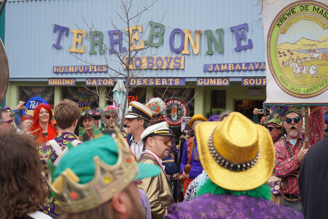 The Lawrence Mardi Gras Parade partied through Massachusetts Street on Tuesday.