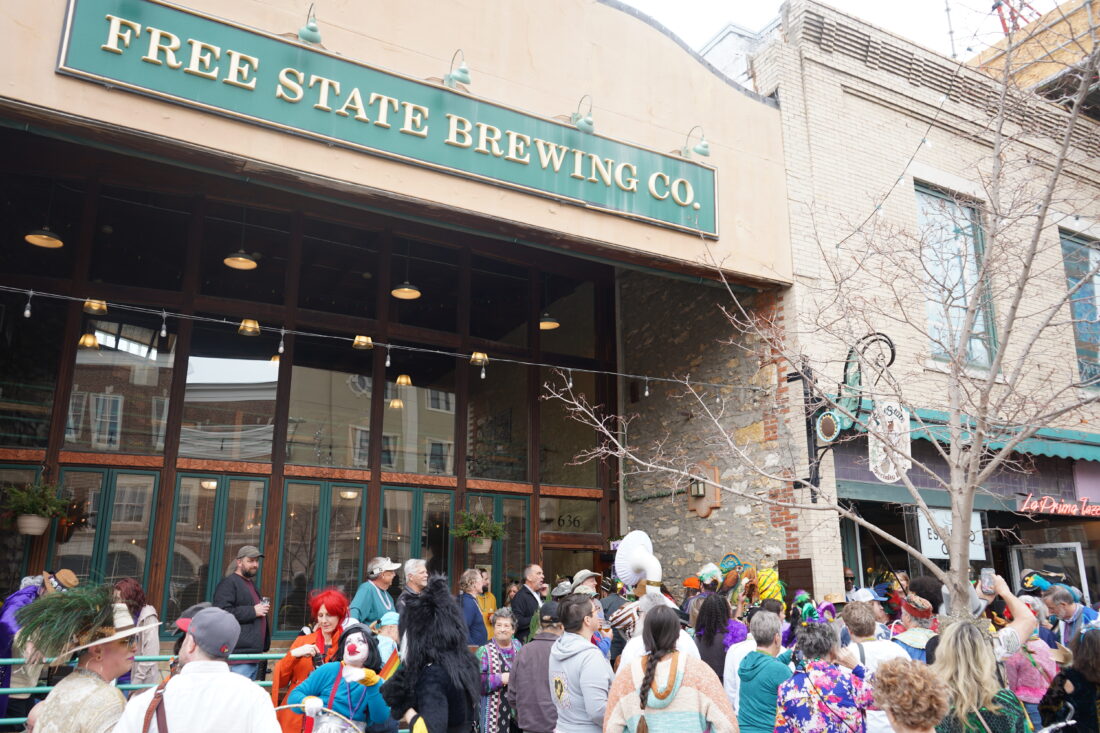 The Lawrence Mardi Gras Parade makes its way to Free State Brewing Company on Tuesday, Feb. 17, 2026.