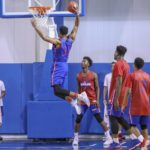Blue Team center David McCormack comes in for a dunk during a scrimmage on Wednesday, June 13, 2018, at the Horejsi Family Athletics Center.