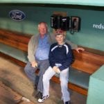 Lawrence’s Marty Pattin, left, poses with grandson Bailey Pattin, a middle-infielder for Perry-Lecompton High, in a Fenway Park dugout. The elder Pattin was among the former Red Sox honored recently before a game at the venerable Boston ballyard.