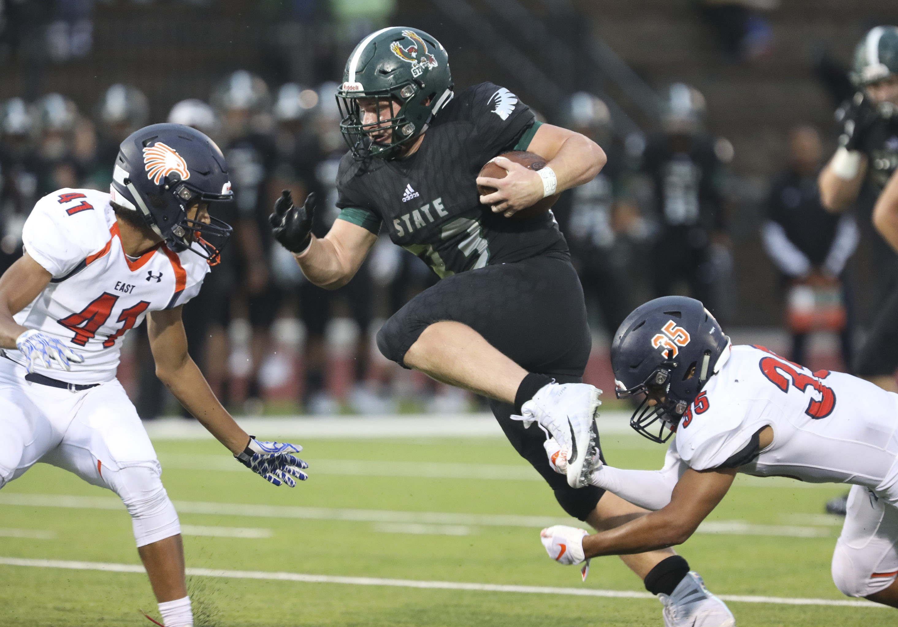 However, Free State used more of a methodical approach against Olathe East, which was necessary due to the conditions. On the first drive, senior running back Jax Dineen carried the ball on the first six plays from scrimmage after recording just eight attempts in the season opener.