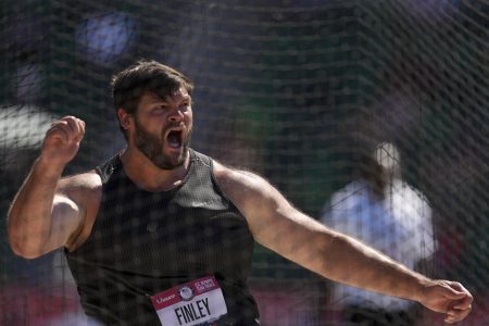 On his fifth of six throws on Friday night, Finley delivered a throw of 63.07 meters, which was just enough to outduel Reggie Jagers, who had a top throw of 62.61 meters. Sam Mattis finished third to round out this year’s U.S. squad in the event.